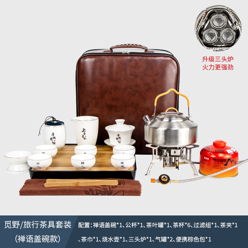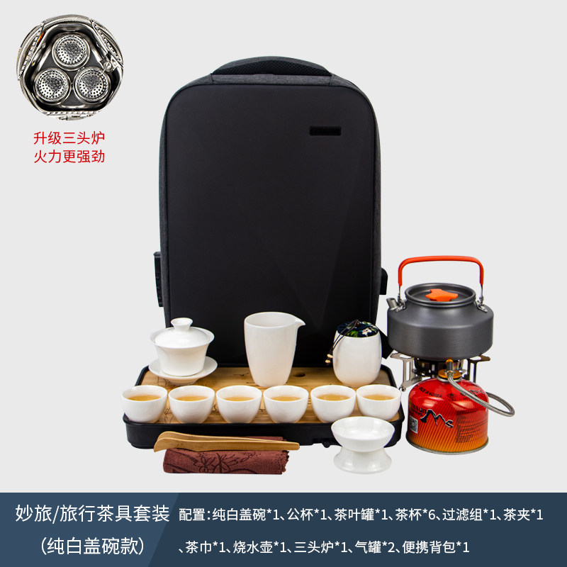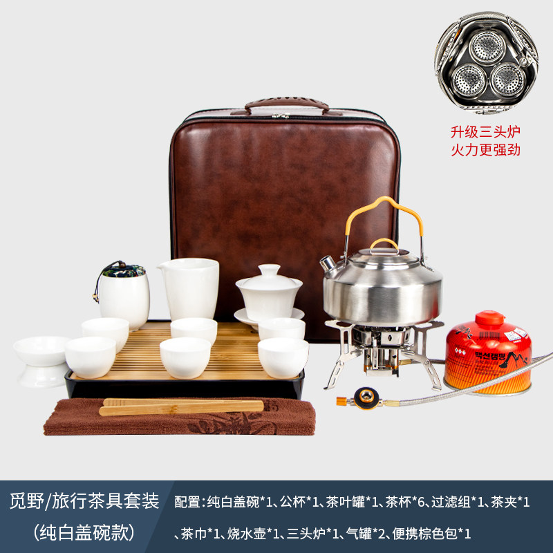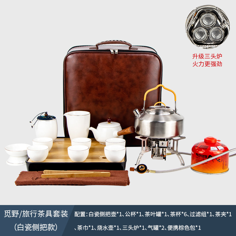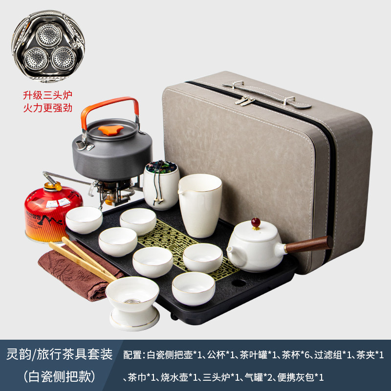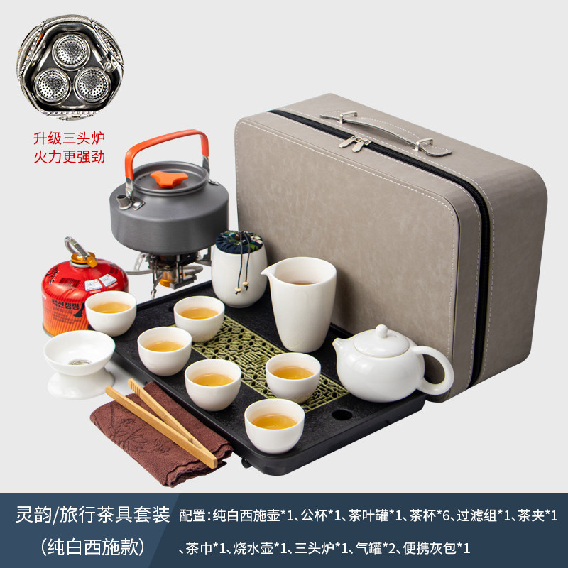 > 旅行装户外茶具套装车载便携式功夫茶具羊脂玉白瓷露营装备带收纳