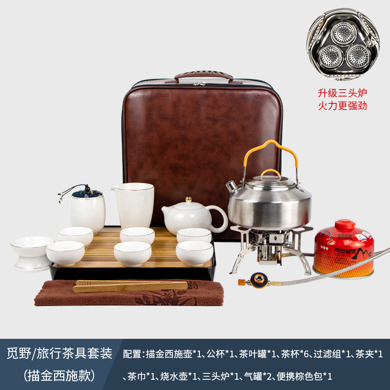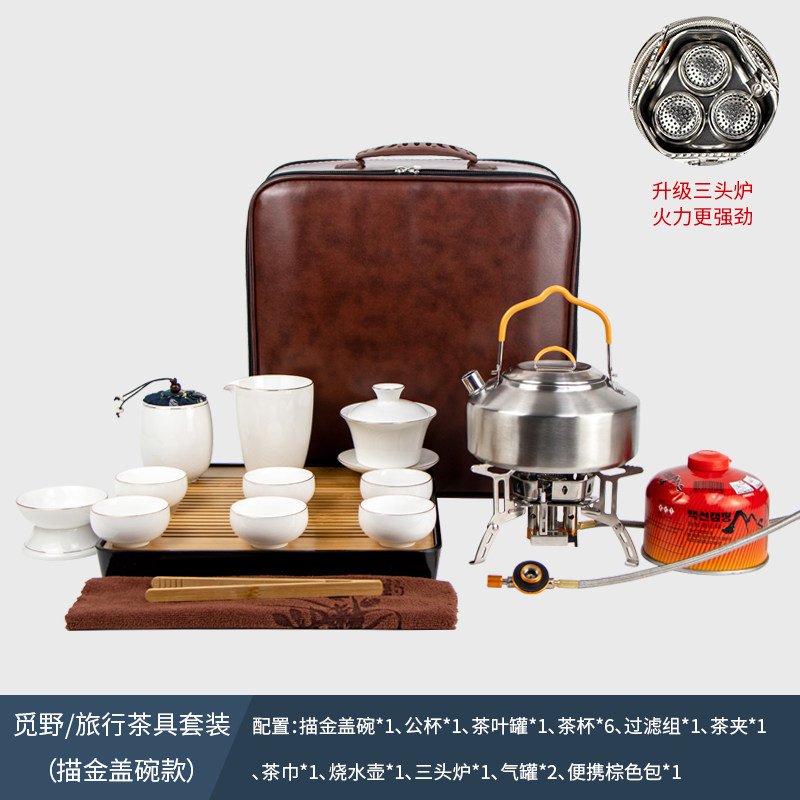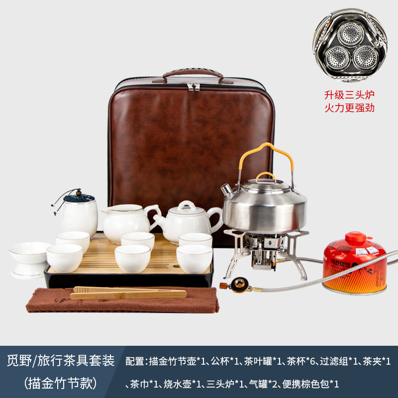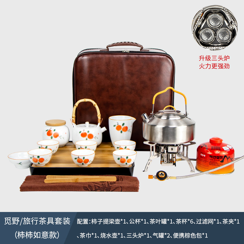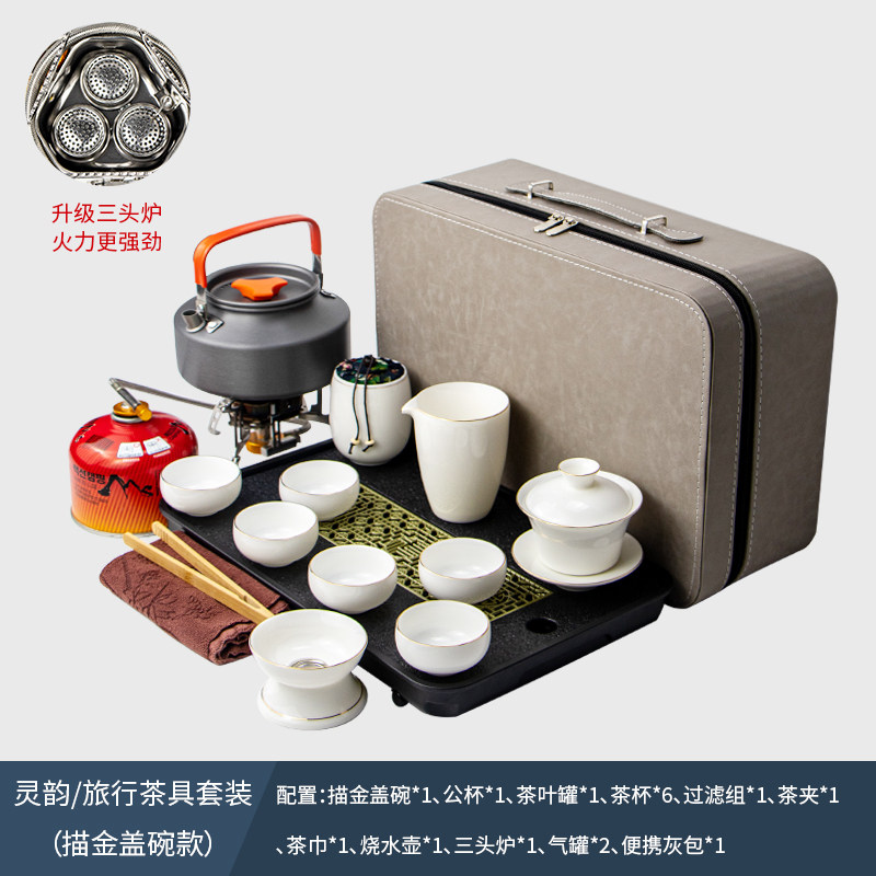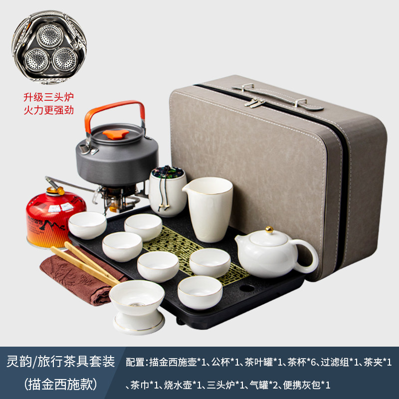 > 旅行装户外茶具套装车载便携式功夫茶具羊脂玉白瓷露营装备带收纳