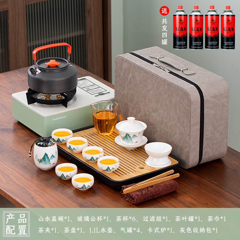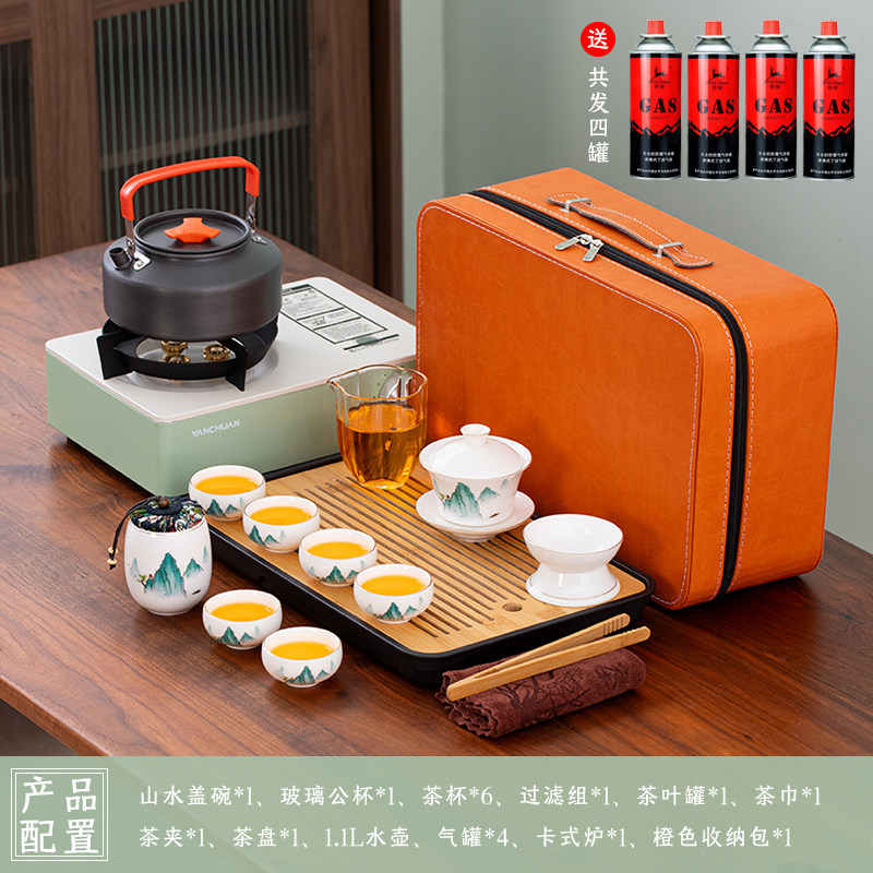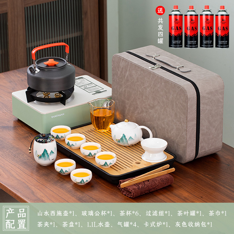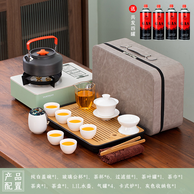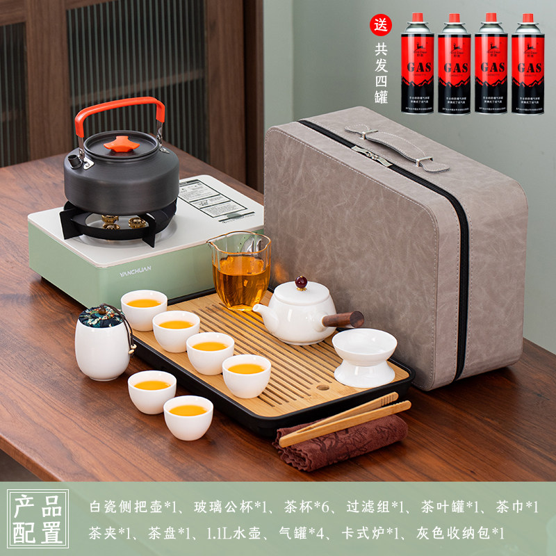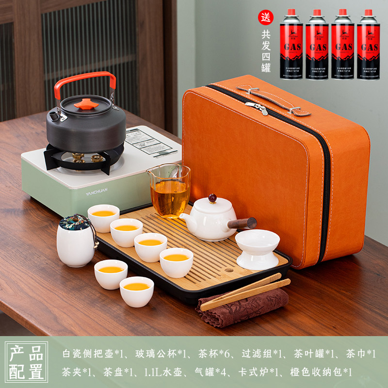 > 2025新款户外羊脂玉功夫茶具套装便携卡式炉煮茶烧水炉具露营钓鱼