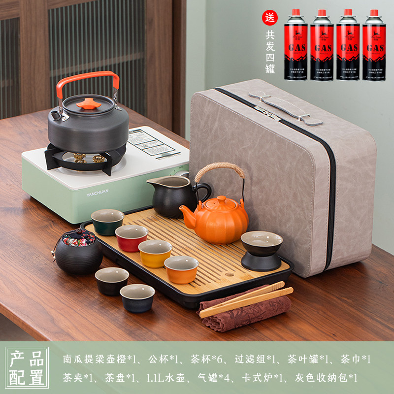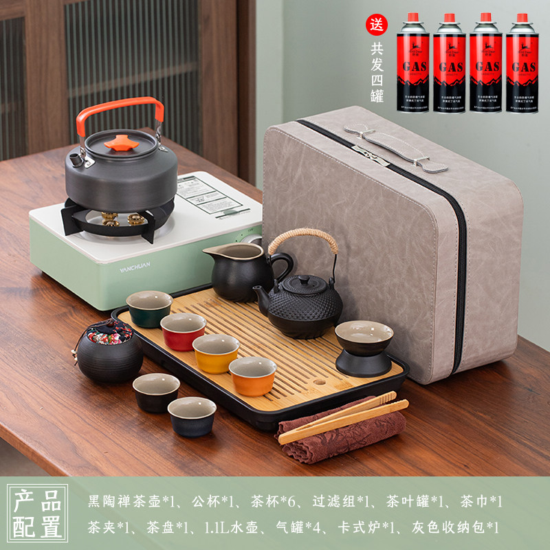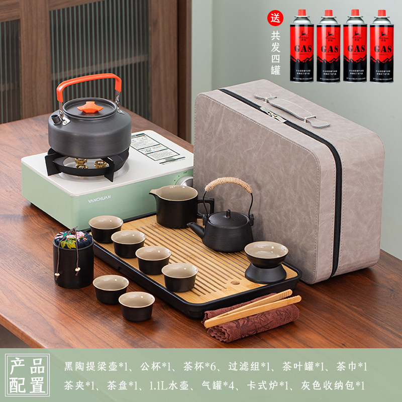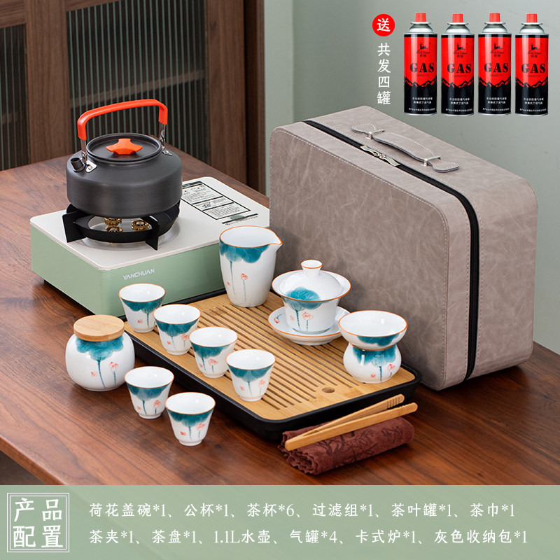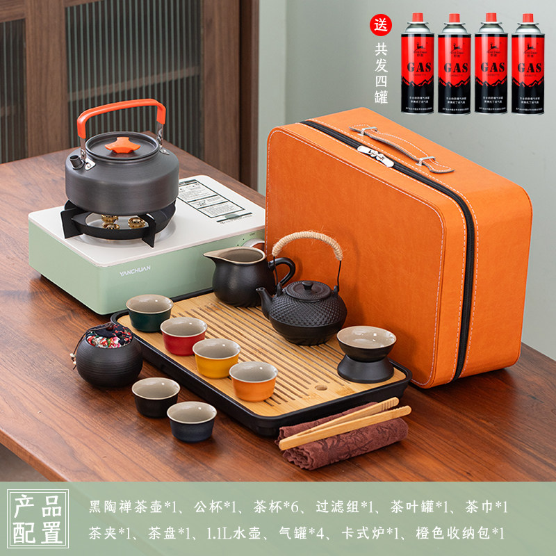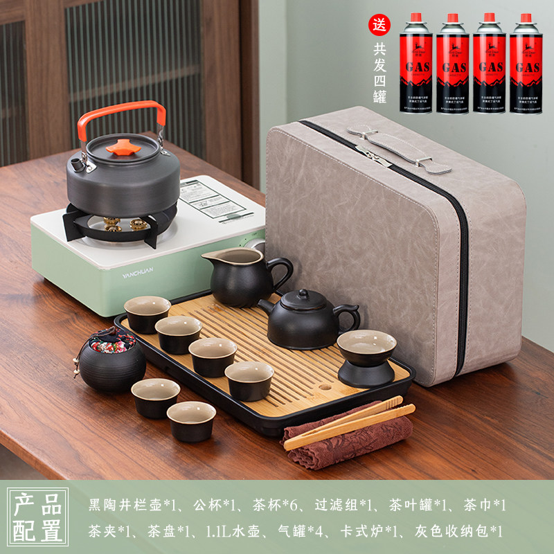 > 2025新款户外羊脂玉功夫茶具套装便携卡式炉煮茶烧水炉具露营钓鱼
