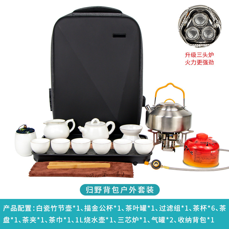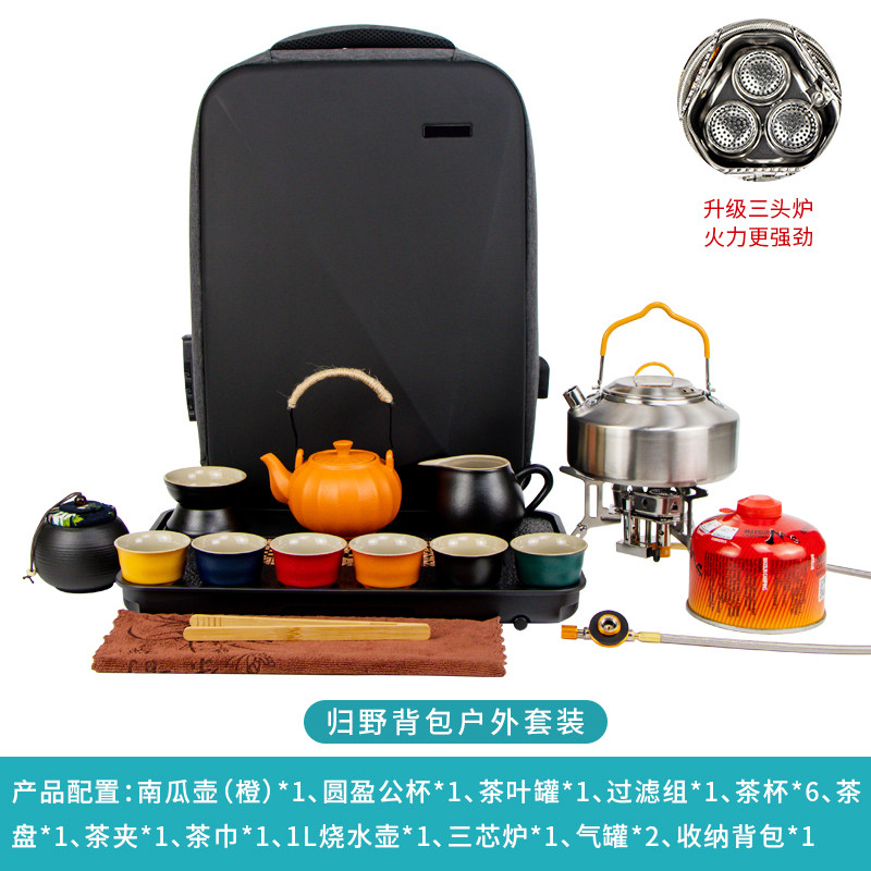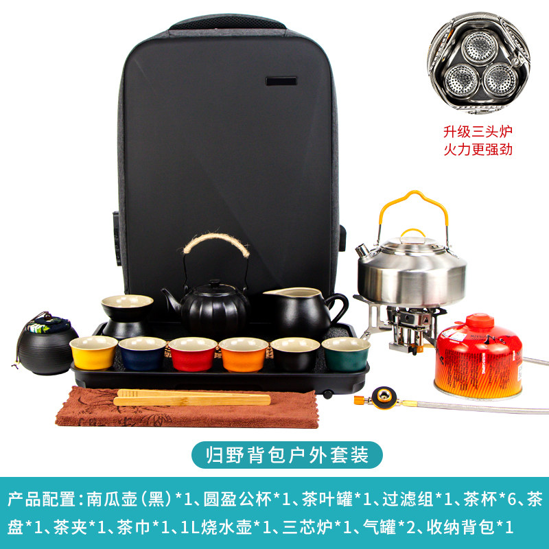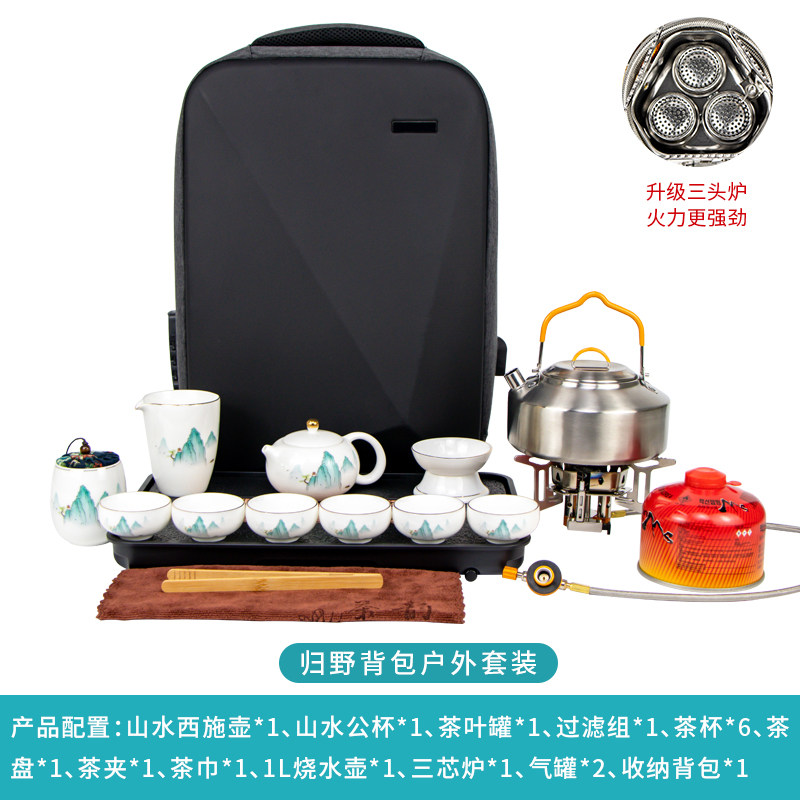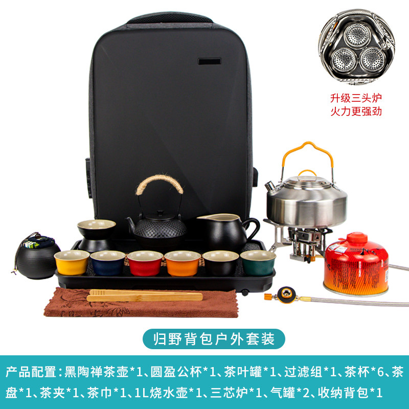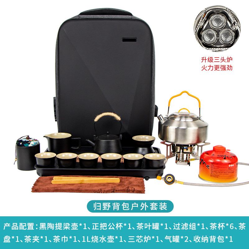 > 户外便携功夫茶具套装背包野外露营煮茶炉电镀壶泡茶炉具装备全套