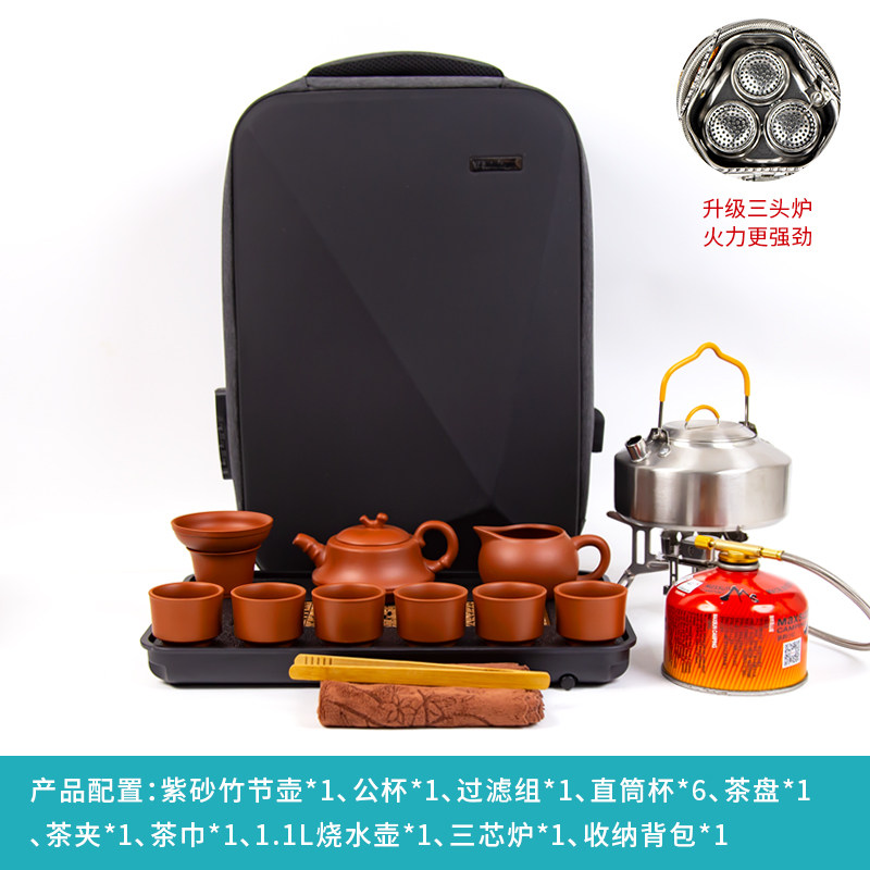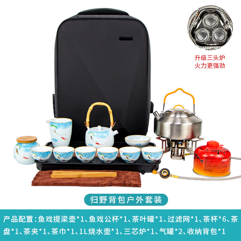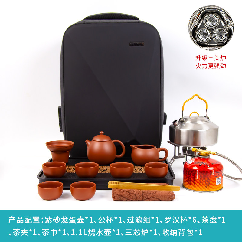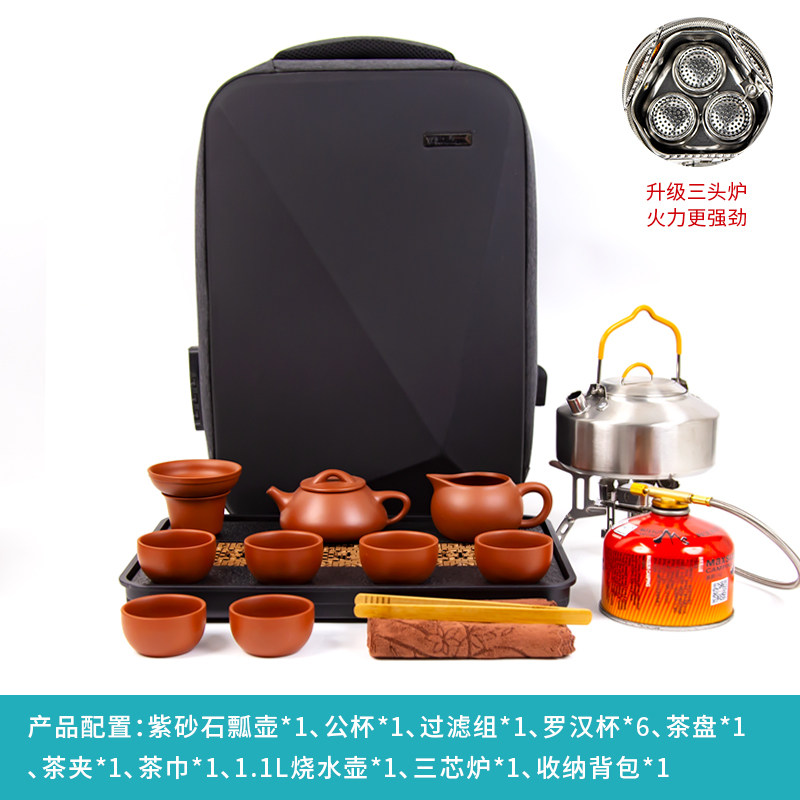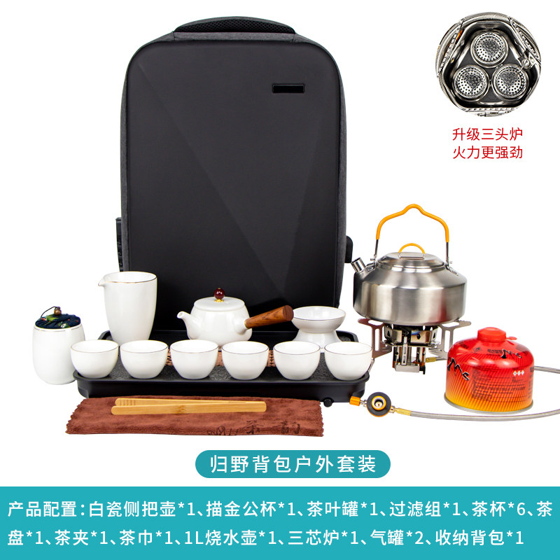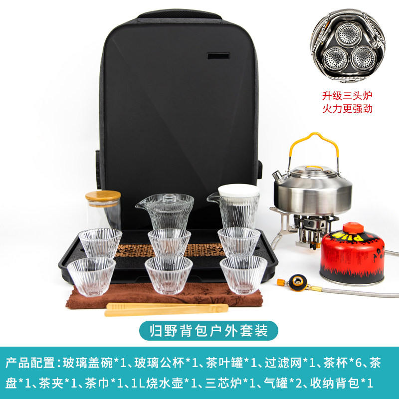 > 户外便携功夫茶具套装背包野外露营煮茶炉电镀壶泡茶炉具装备全套