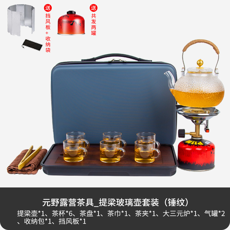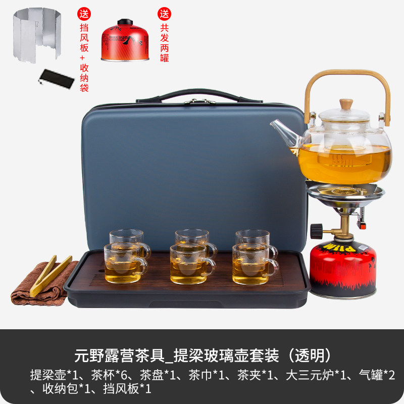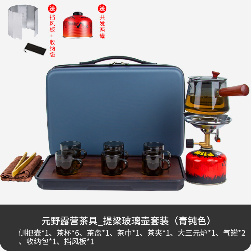 > 户外野炊旅行茶具露营挡风板泡茶烧水壶茶杯全套高档陶瓷旅游炉具