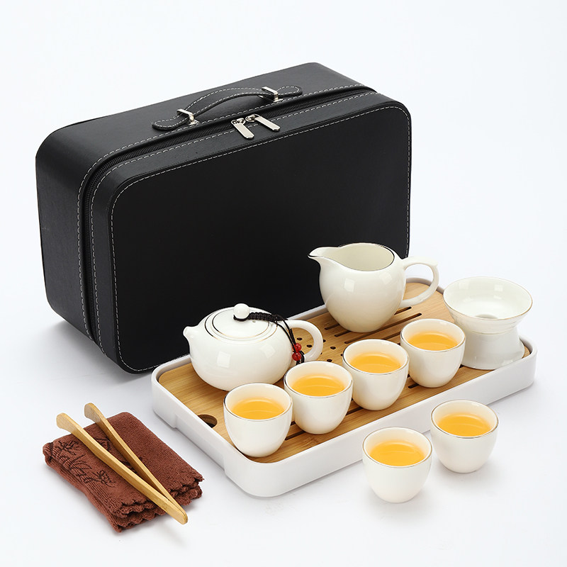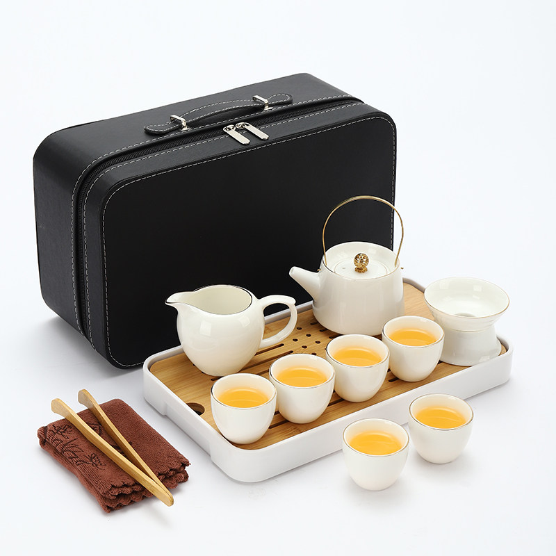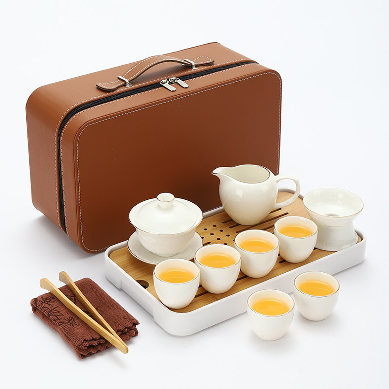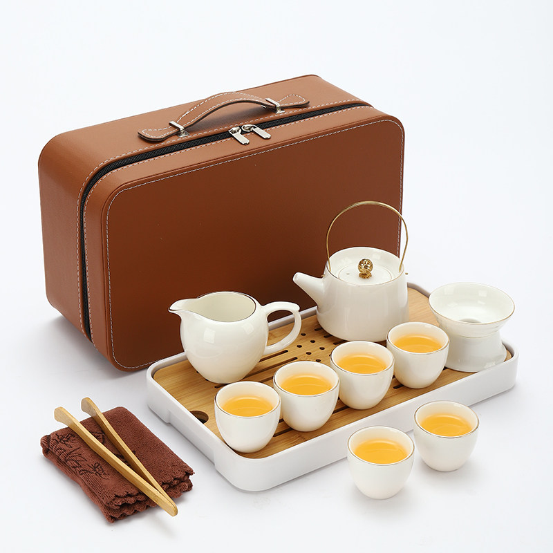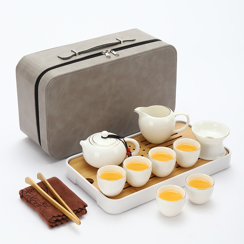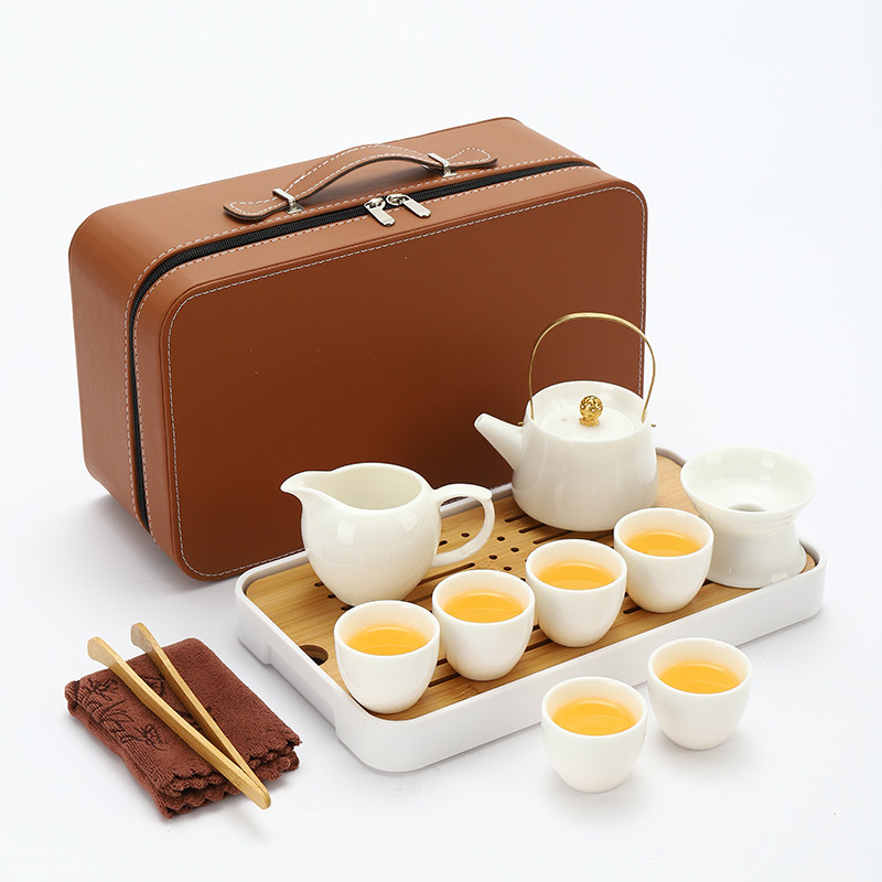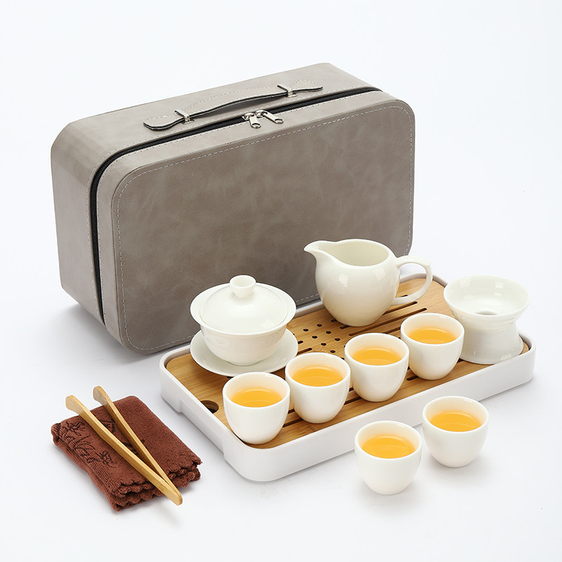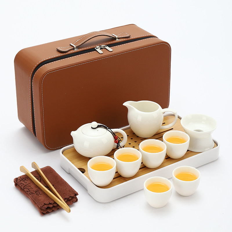 > 羊脂玉白瓷旅行功夫茶具套装家用便携式户外旅游泡茶盖碗茶壶茶杯