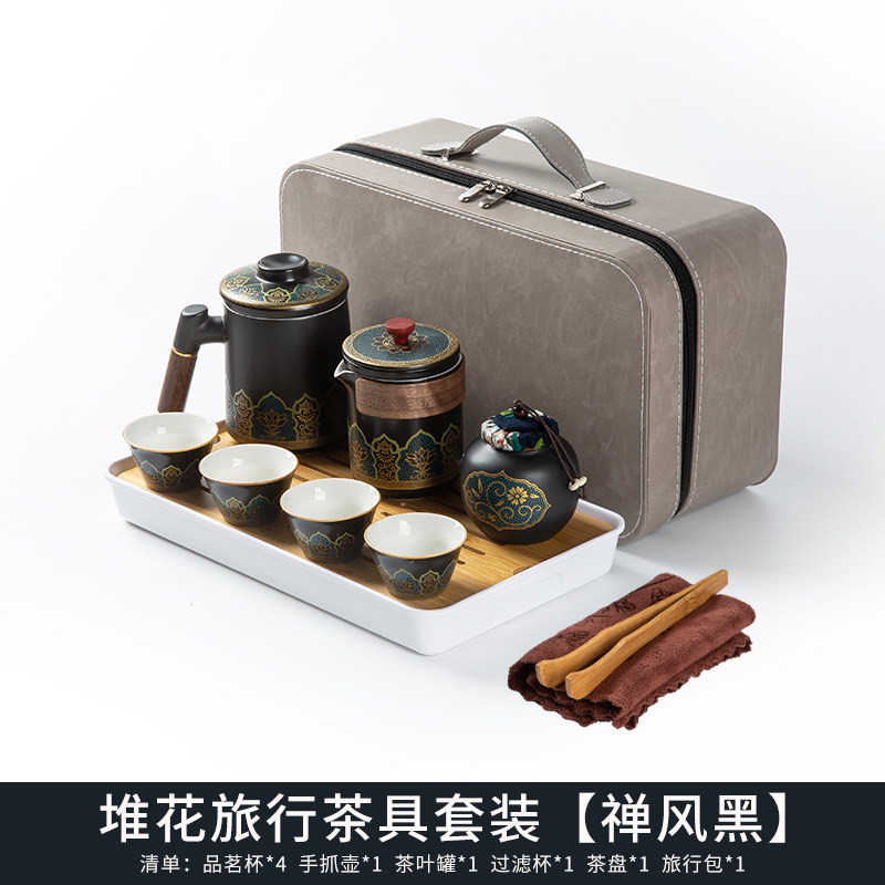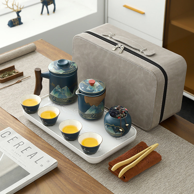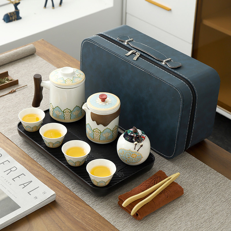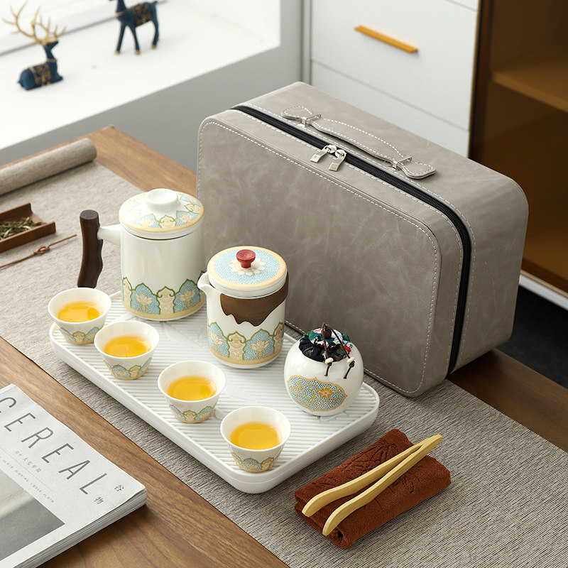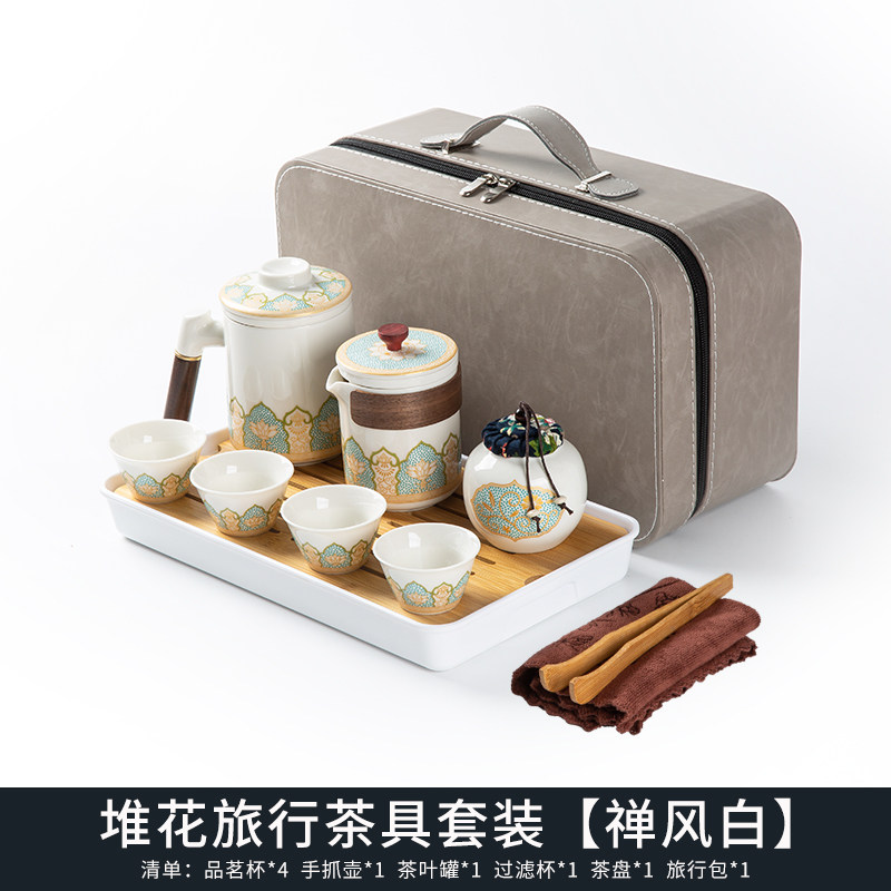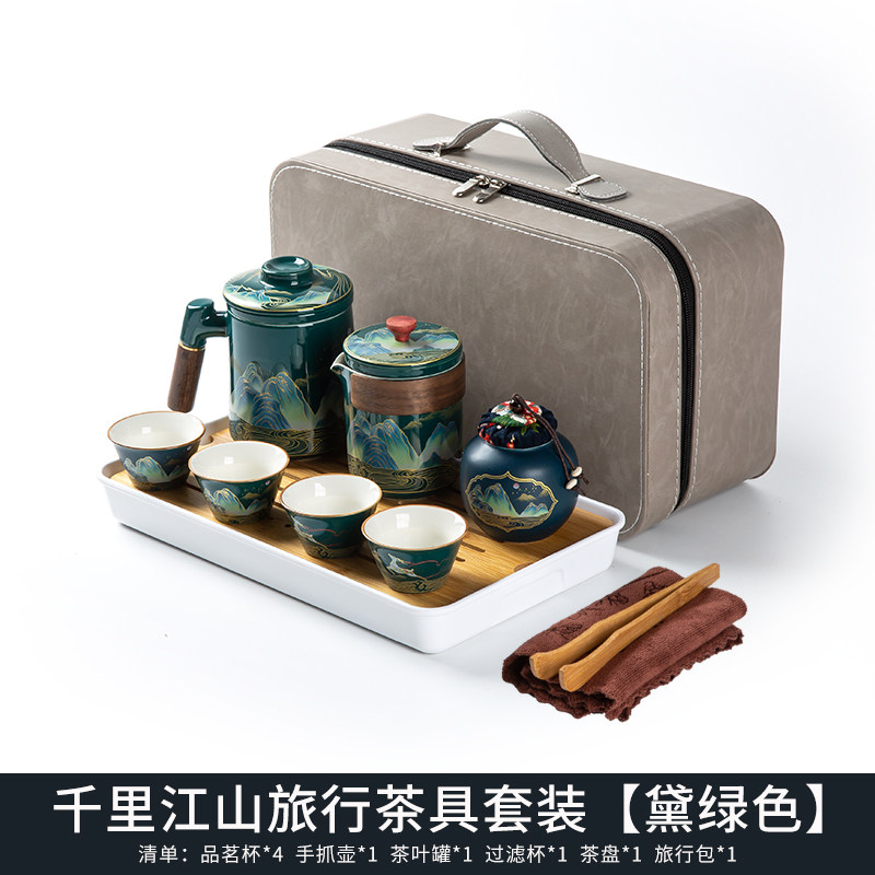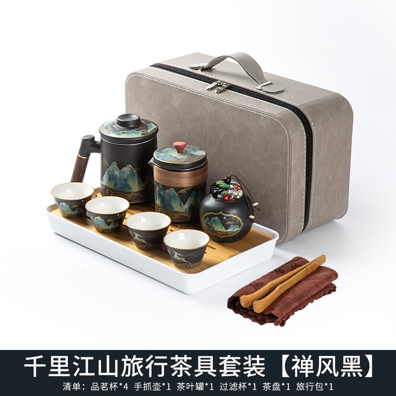 > 便携旅行功夫茶具小套装简约户外包陶瓷快客杯一壶四杯水杯泡茶壶