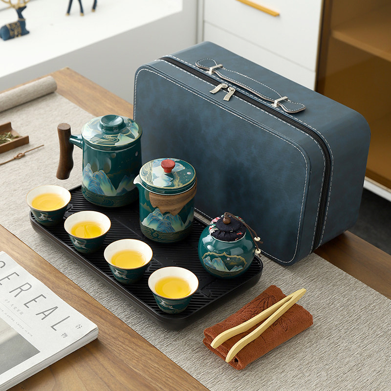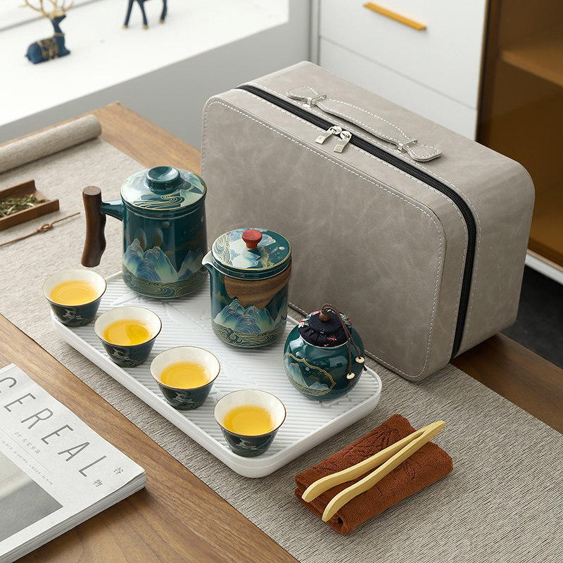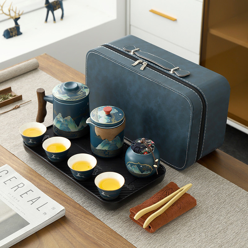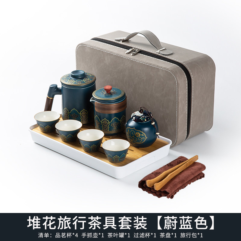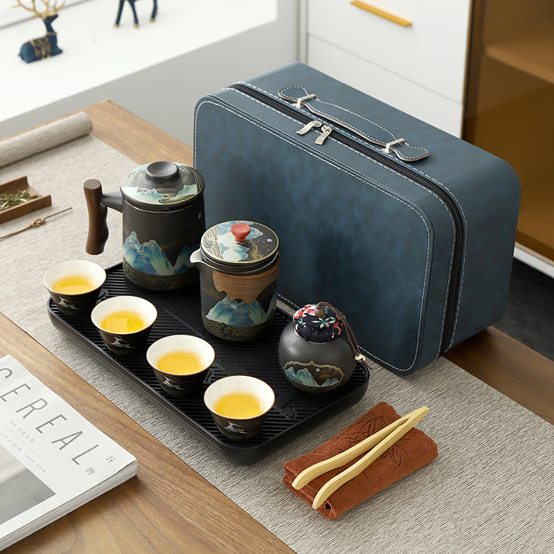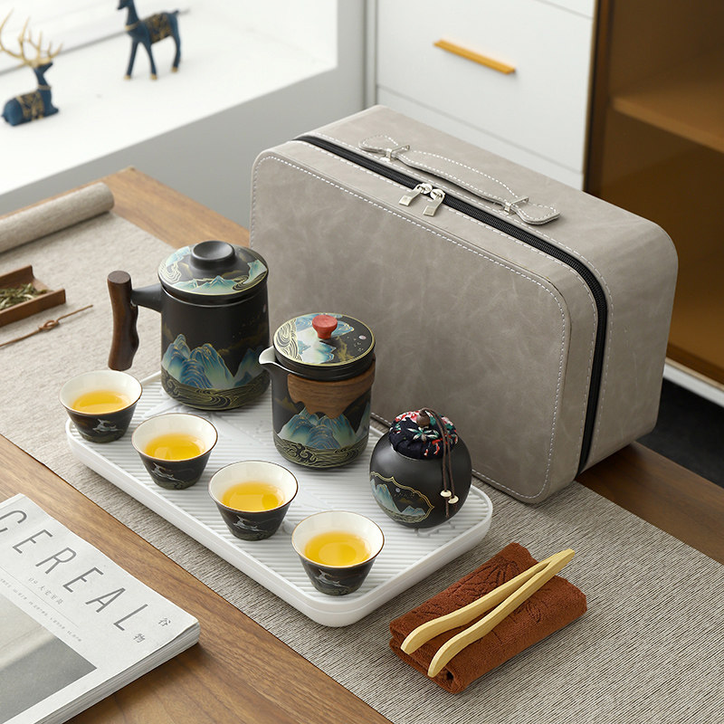 > 便携旅行功夫茶具小套装简约户外包陶瓷快客杯一壶四杯水杯泡茶壶