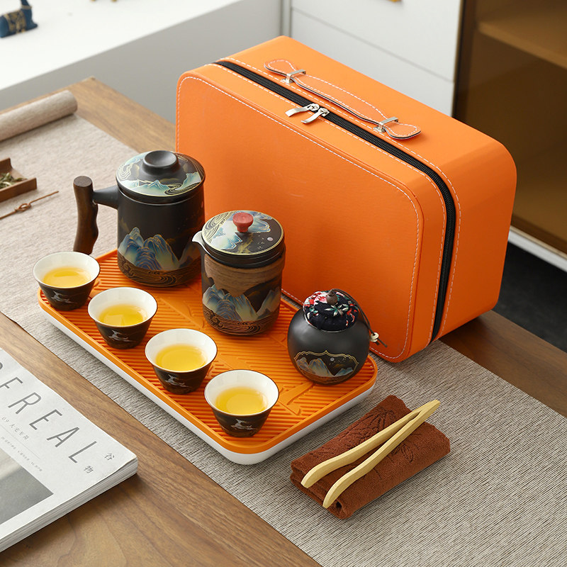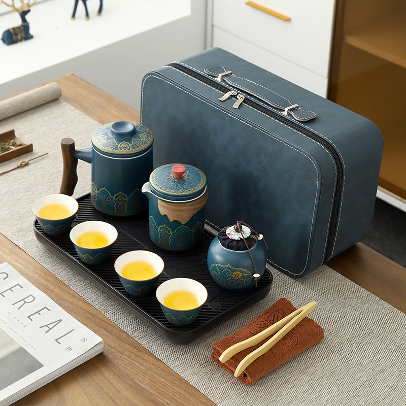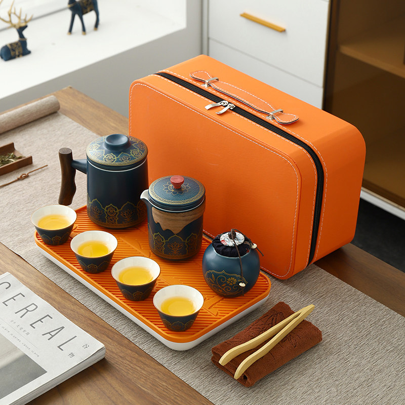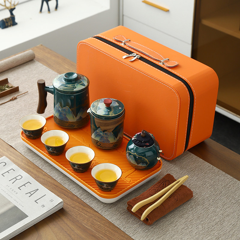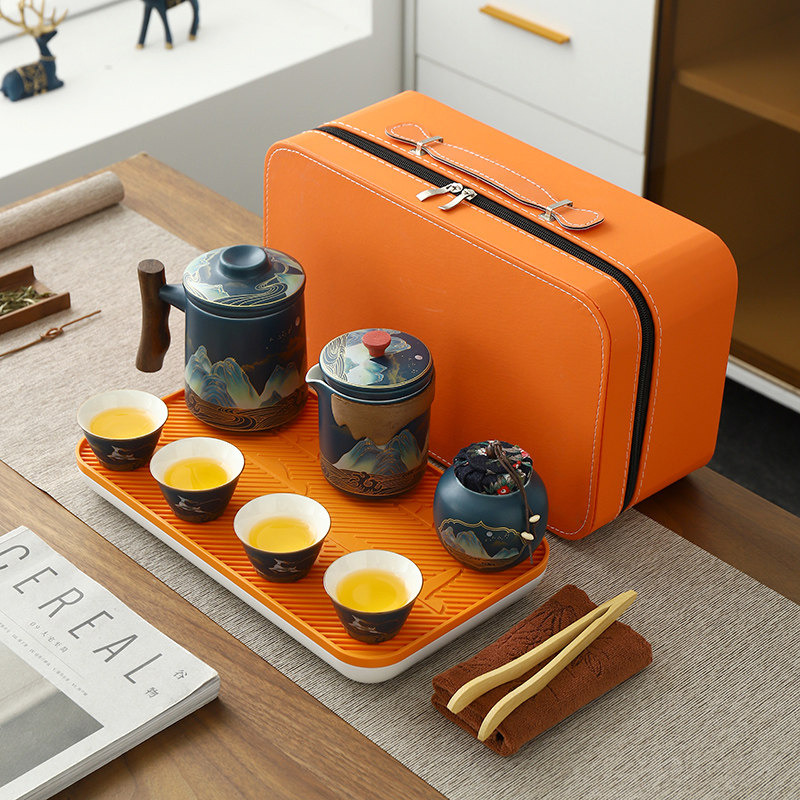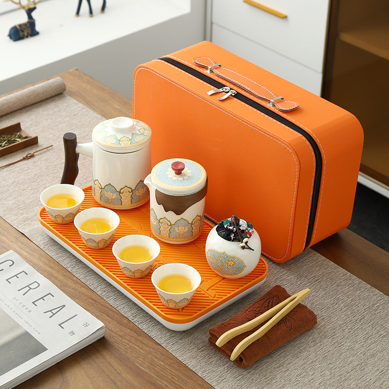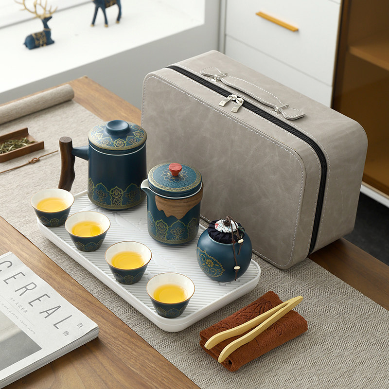 > 便携旅行功夫茶具小套装简约户外包陶瓷快客杯一壶四杯水杯泡茶壶