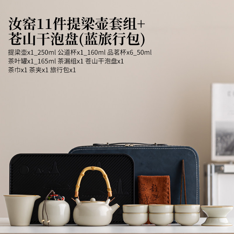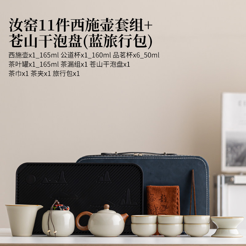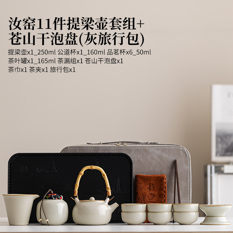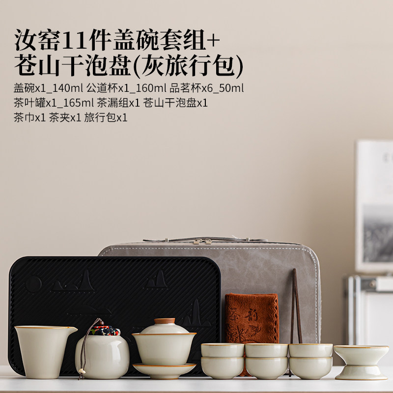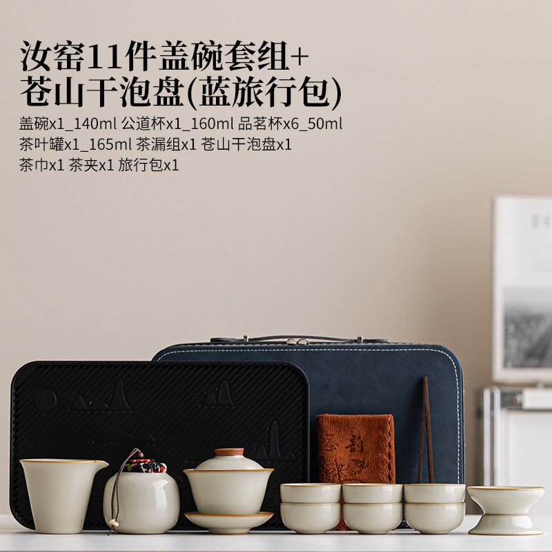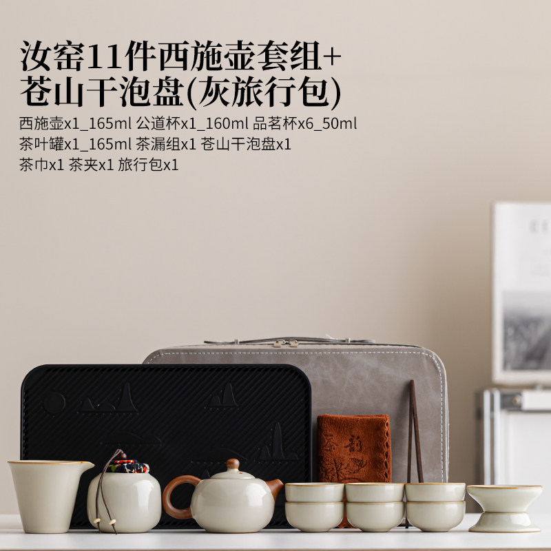 > 黄汝窑旅行茶具套装家用功夫便携式户外茶壶喝茶盖碗茶杯2024新款