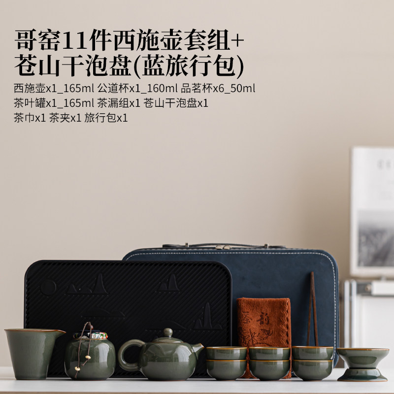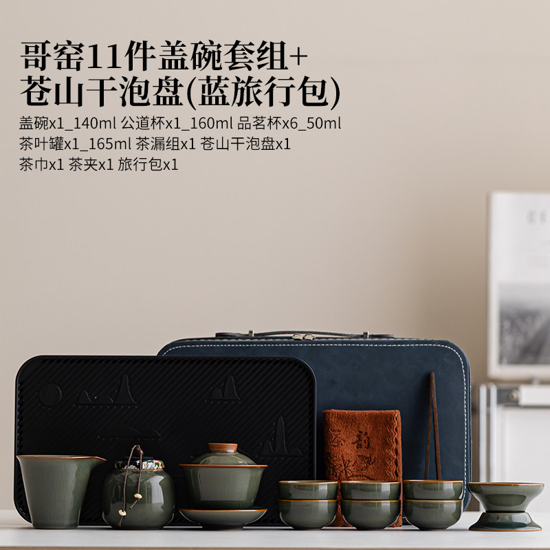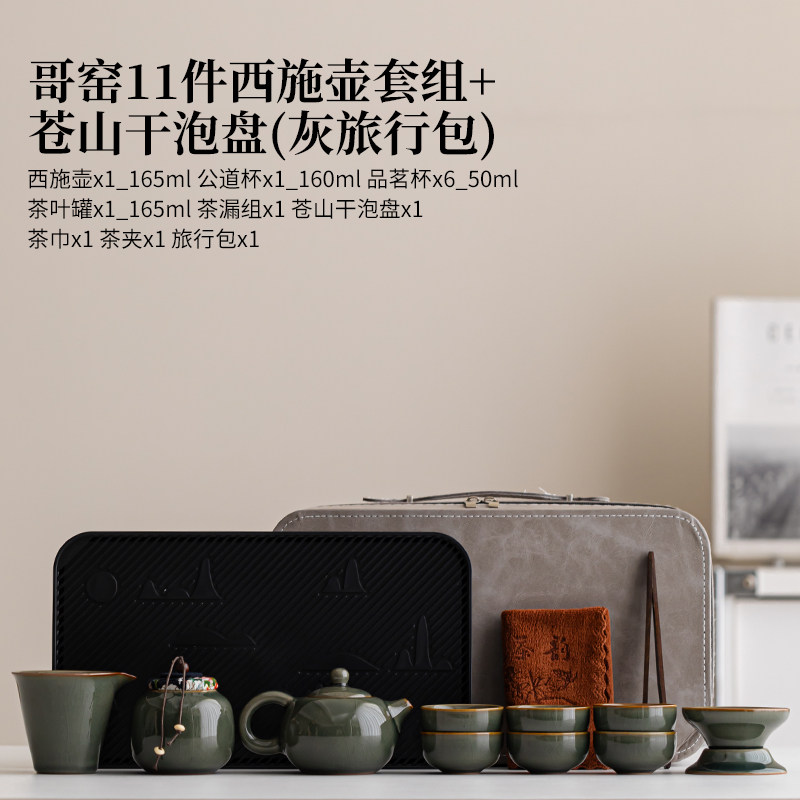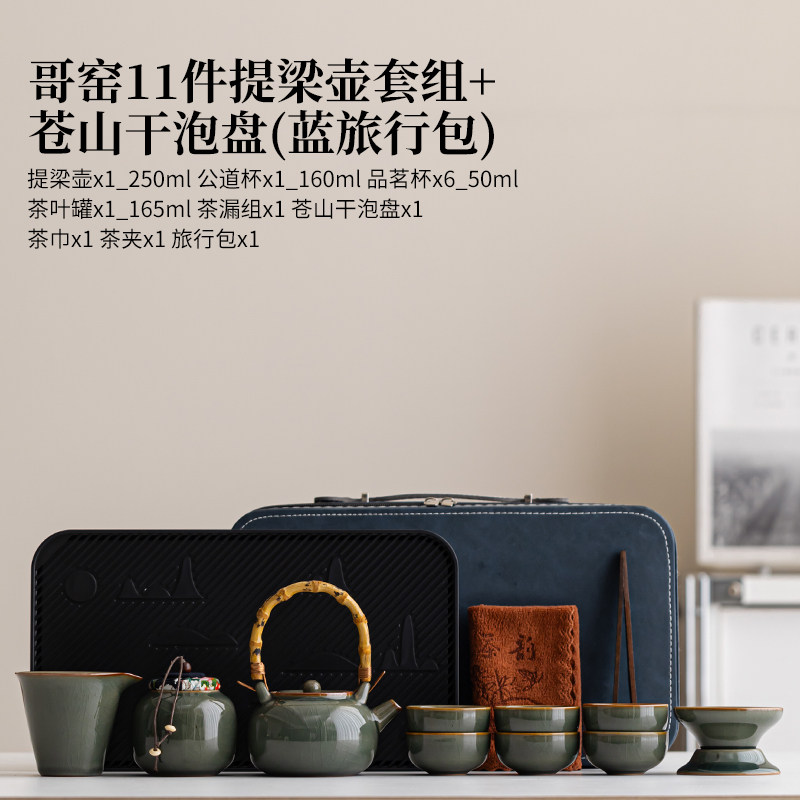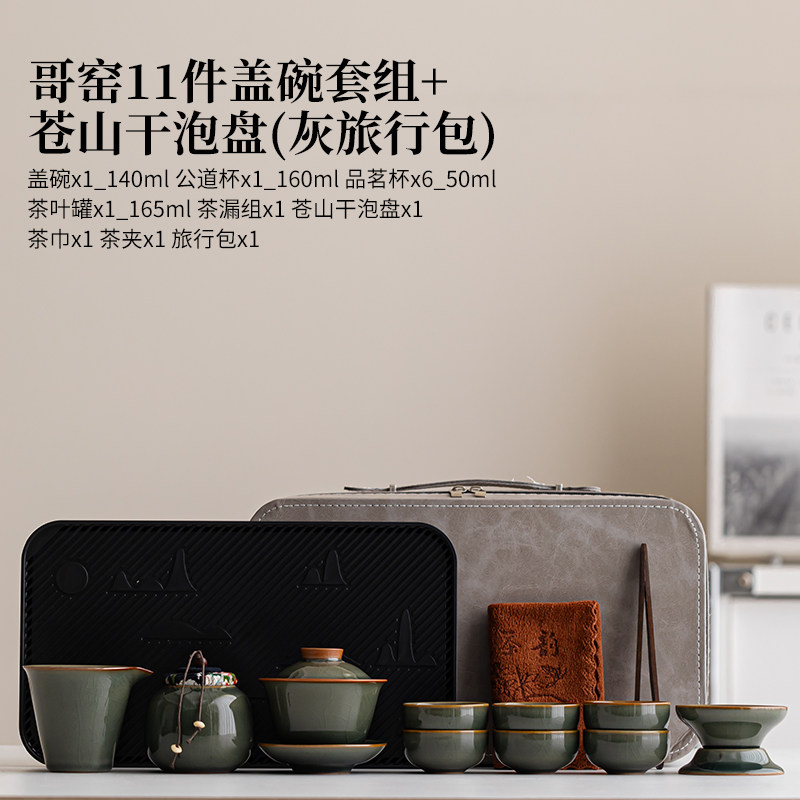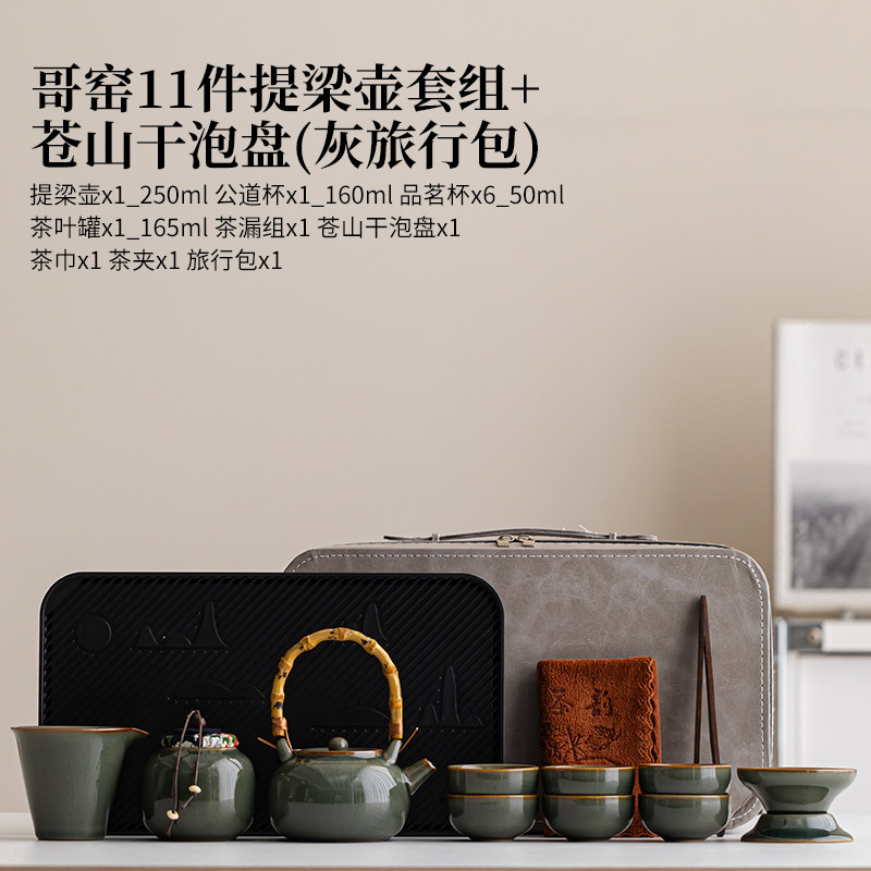 > 黄汝窑旅行茶具套装家用功夫便携式户外茶壶喝茶盖碗茶杯2024新款