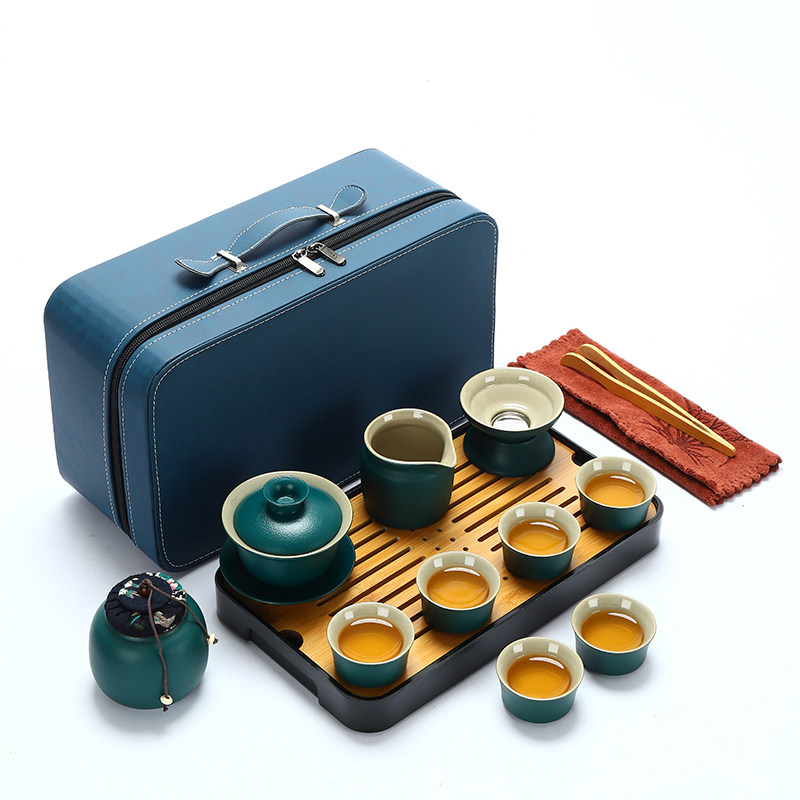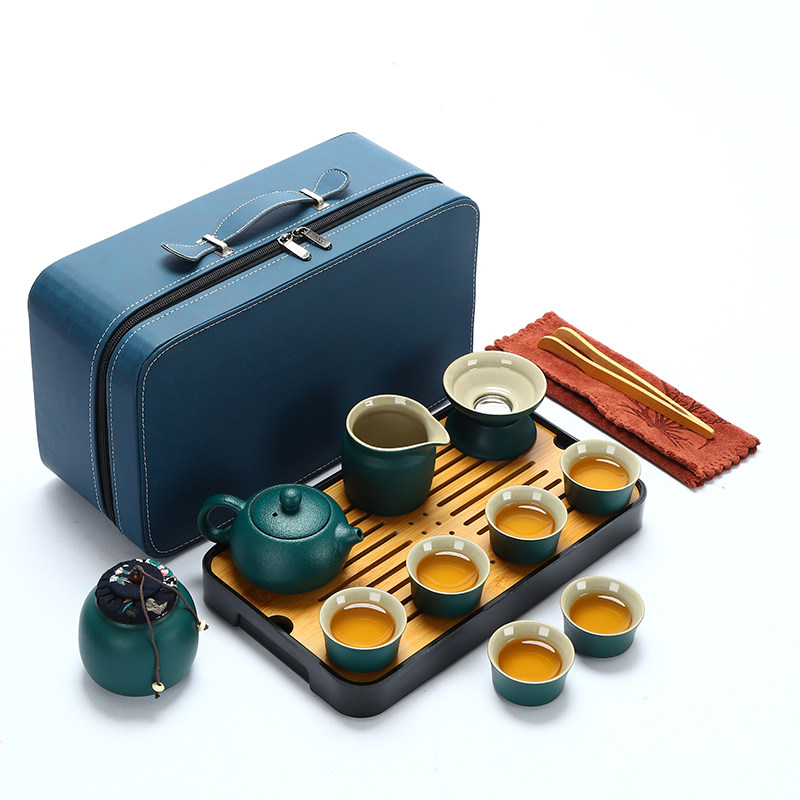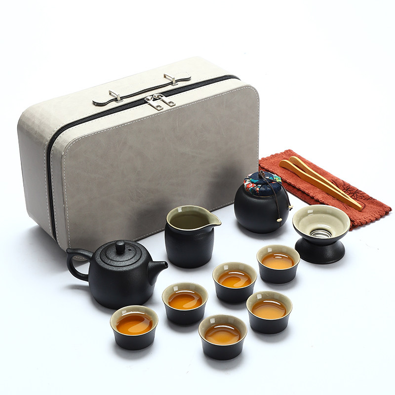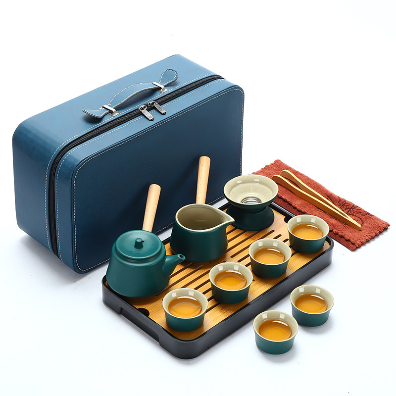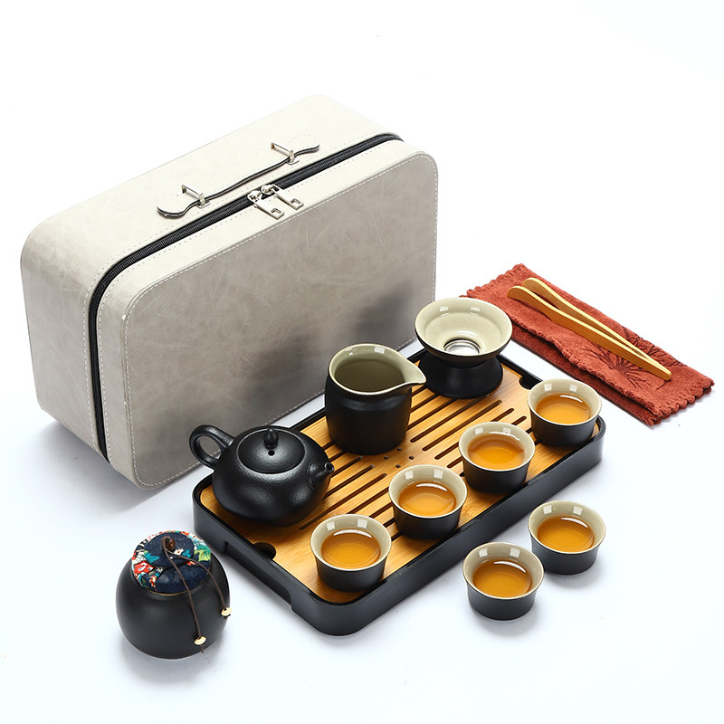 > 日式旅行功夫茶具小套装家用简约泡茶壶陶瓷茶杯户外茶盘便携式包