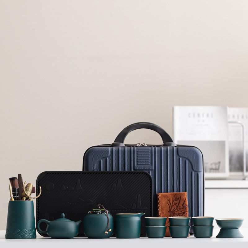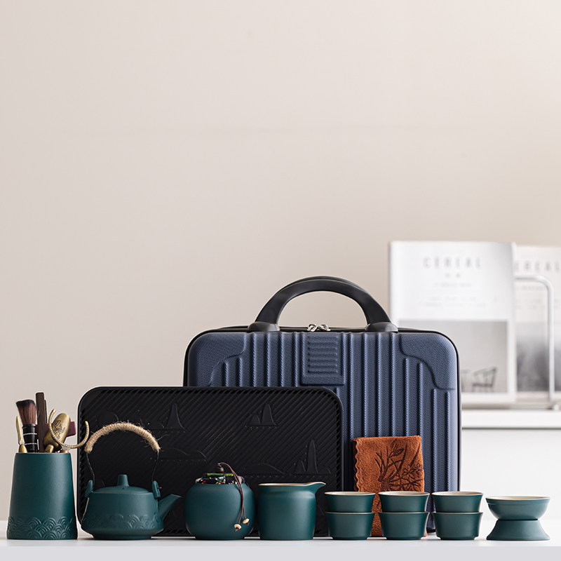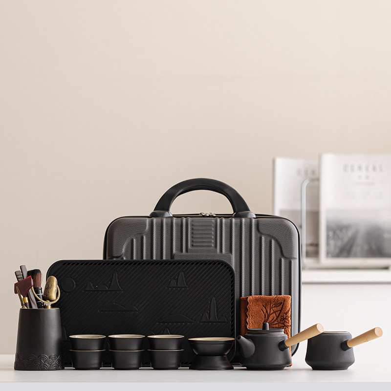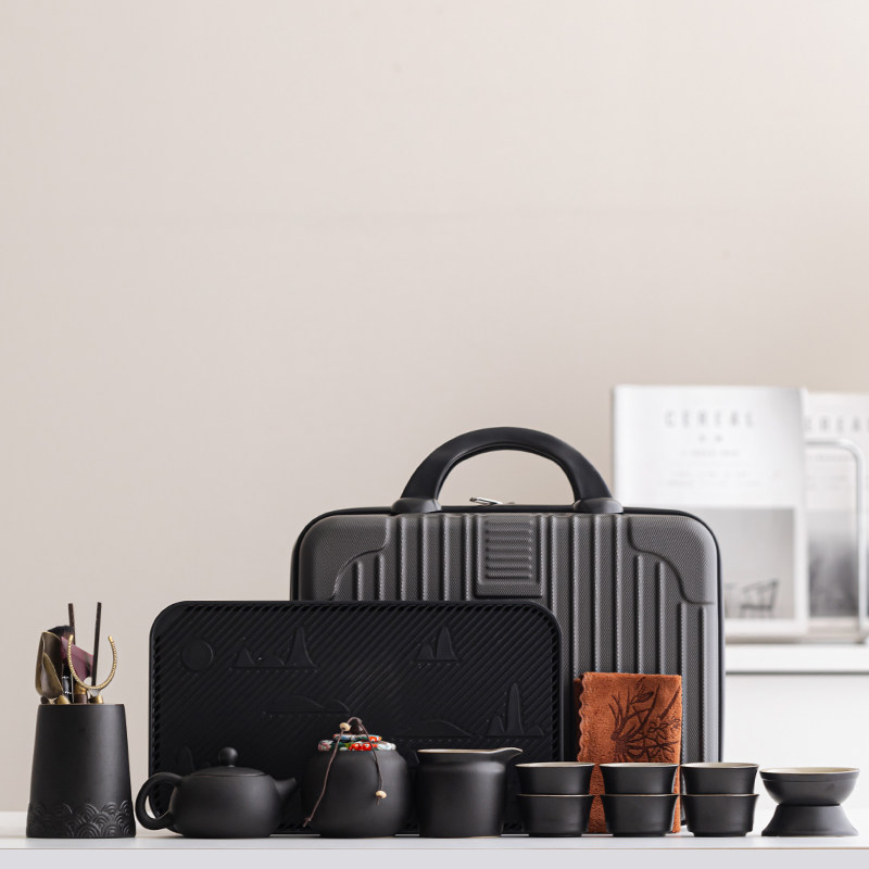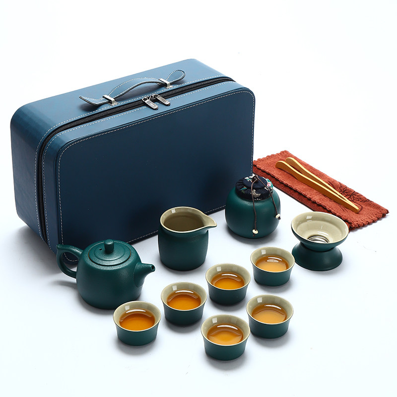 > 日式旅行功夫茶具小套装家用简约泡茶壶陶瓷茶杯户外茶盘便携式包