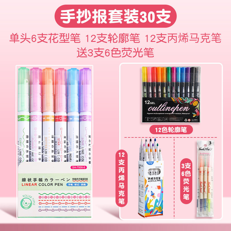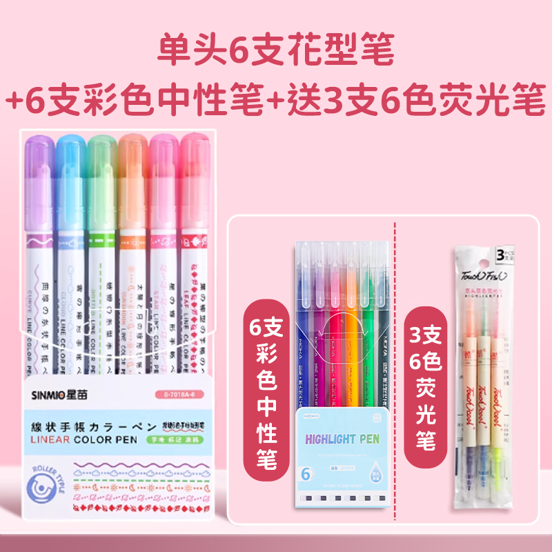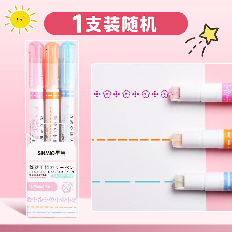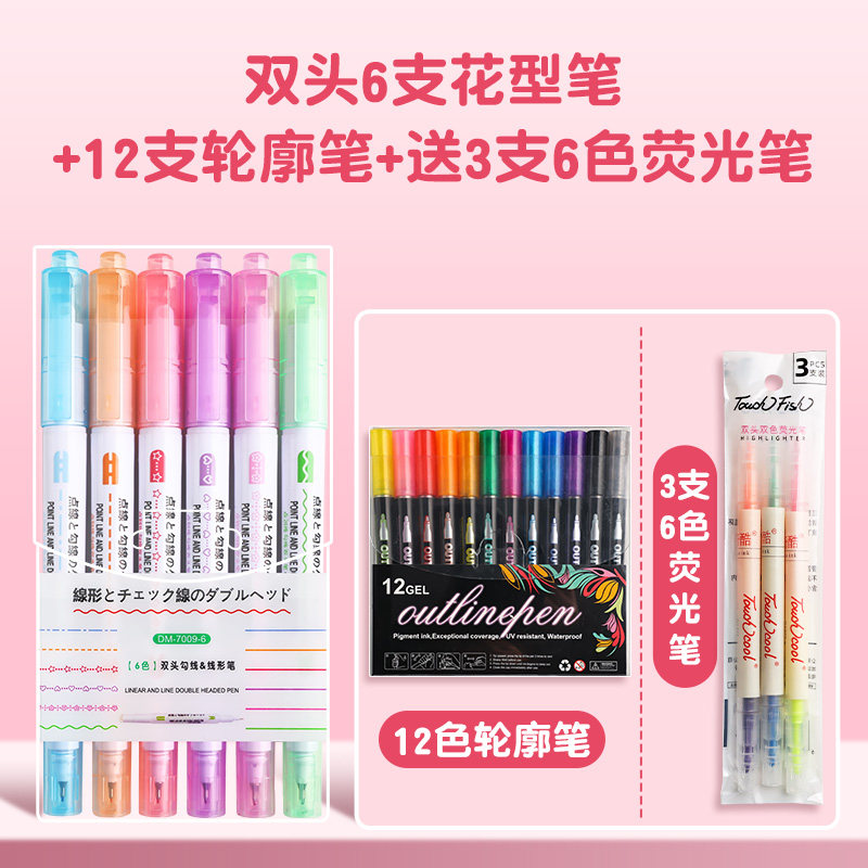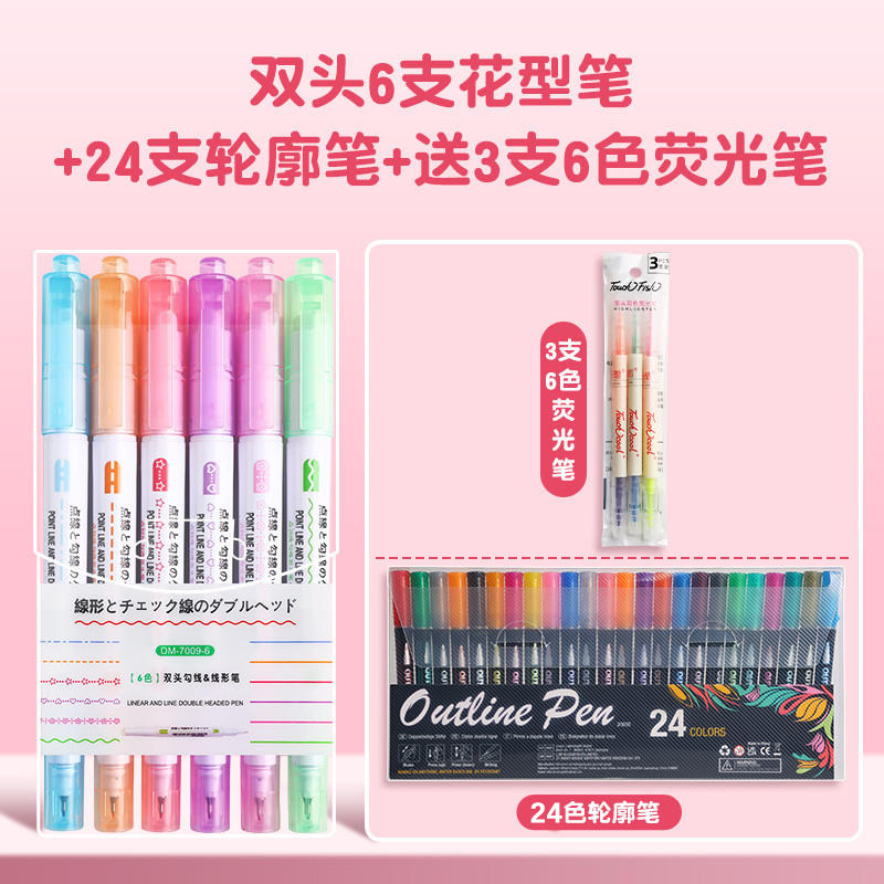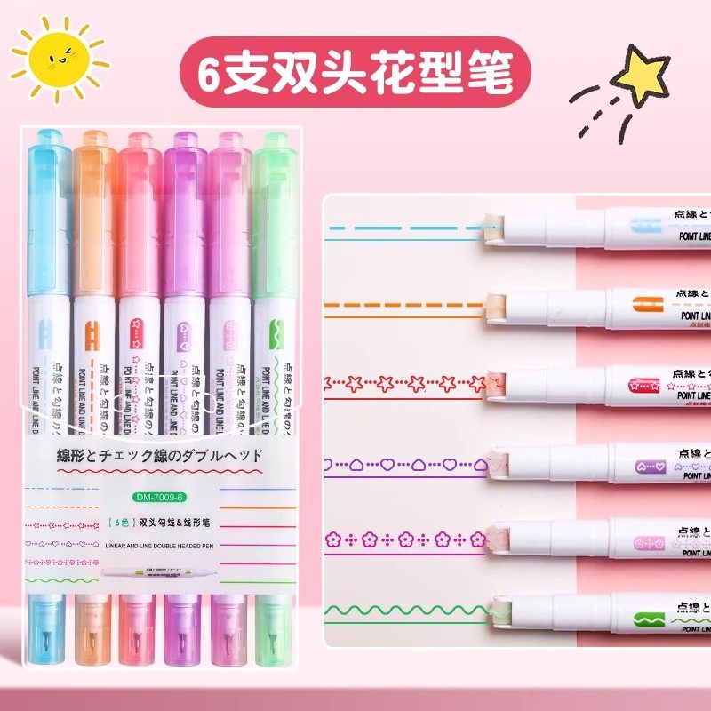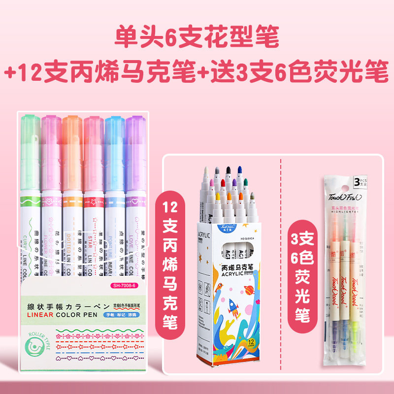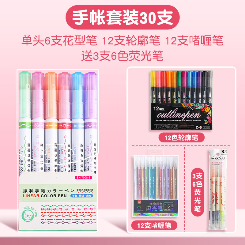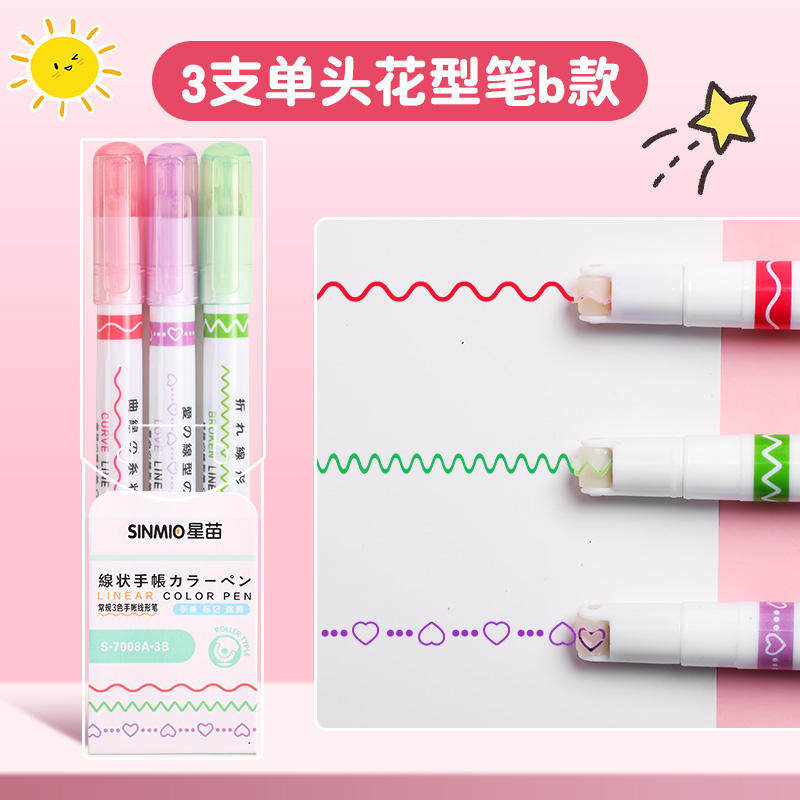 花型轮廓曲线笔手帐图案彩色标记花纹荧光色手账多色笔儿童花形多功能花边花色记号手抄报专用印花线条滚轮笔