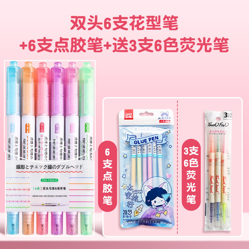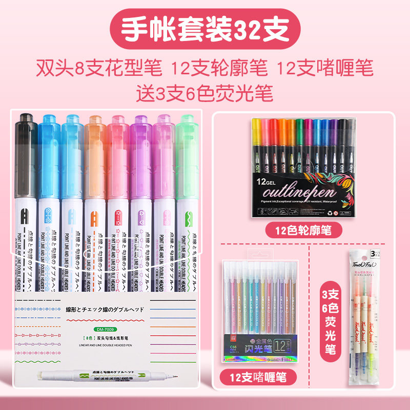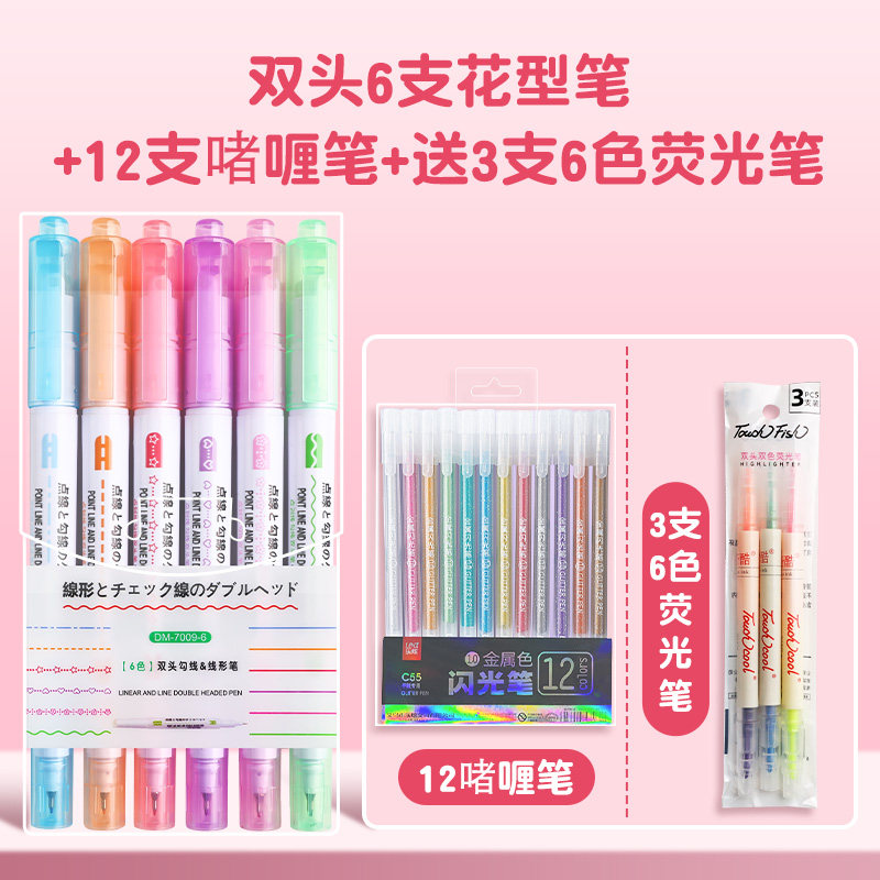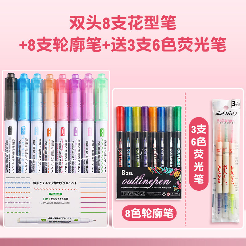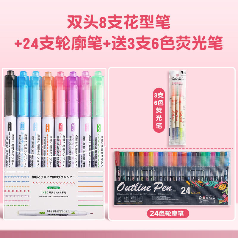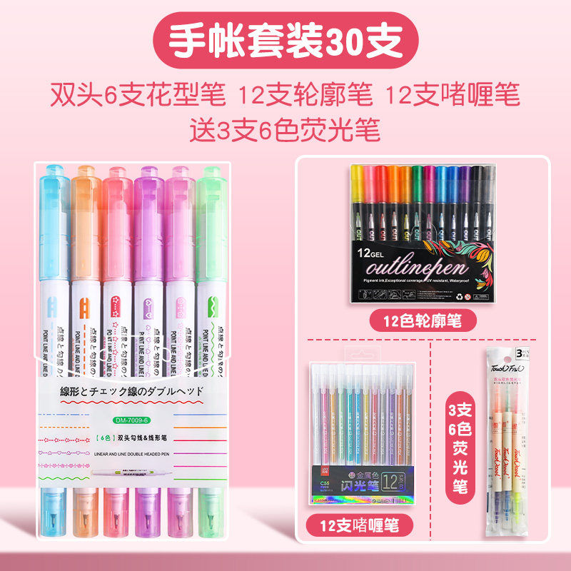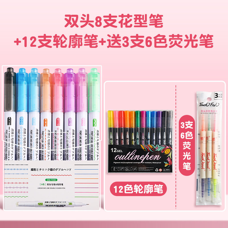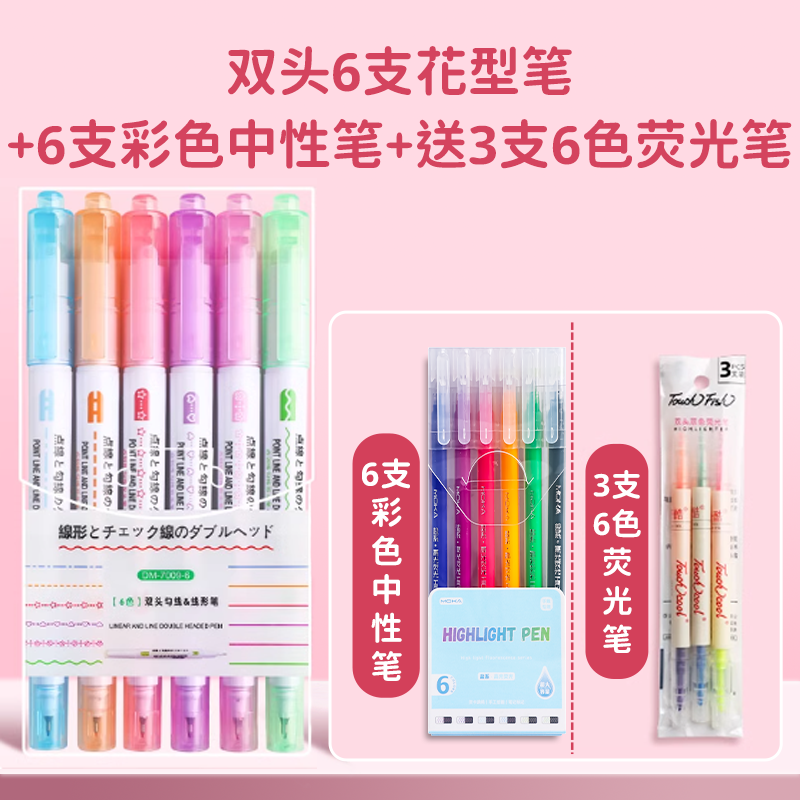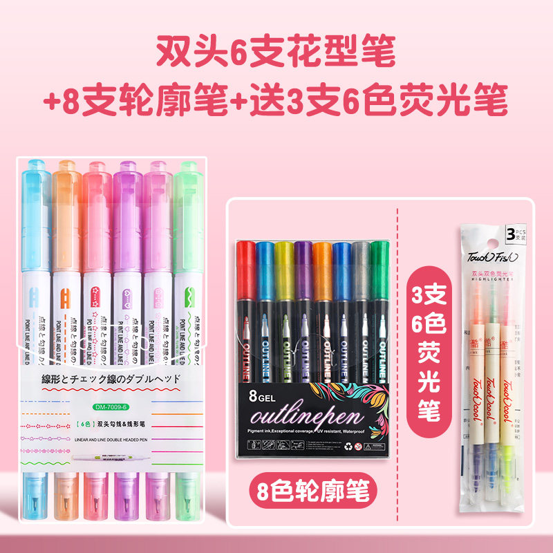 花型轮廓曲线笔手帐图案彩色标记花纹荧光色手账多色笔儿童花形多功能花边花色记号手抄报专用印花线条滚轮笔