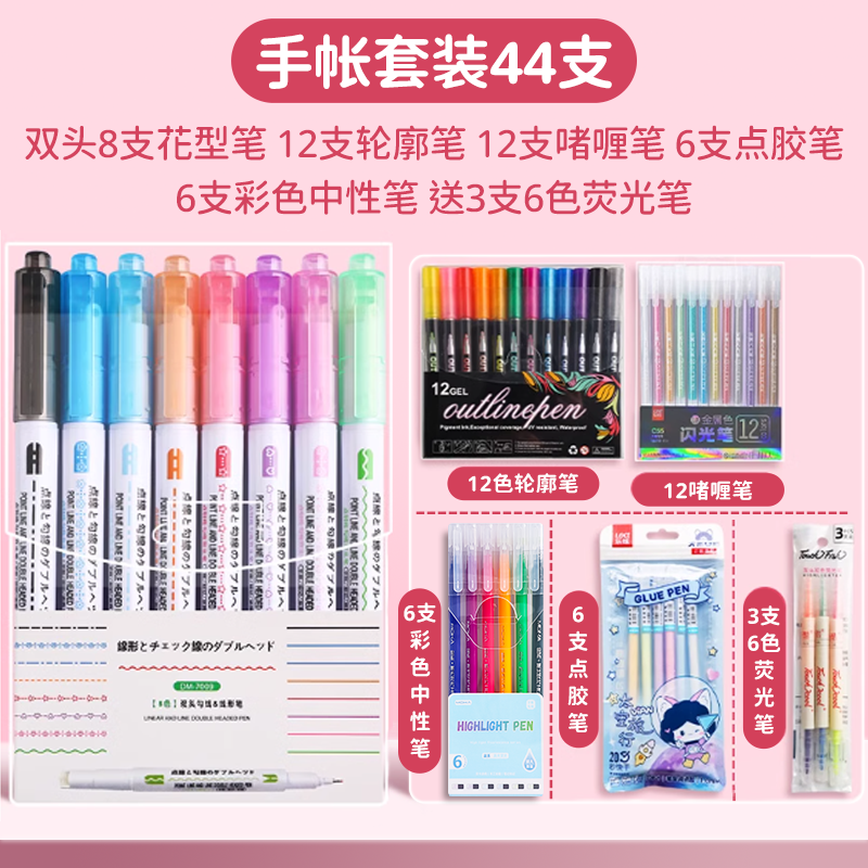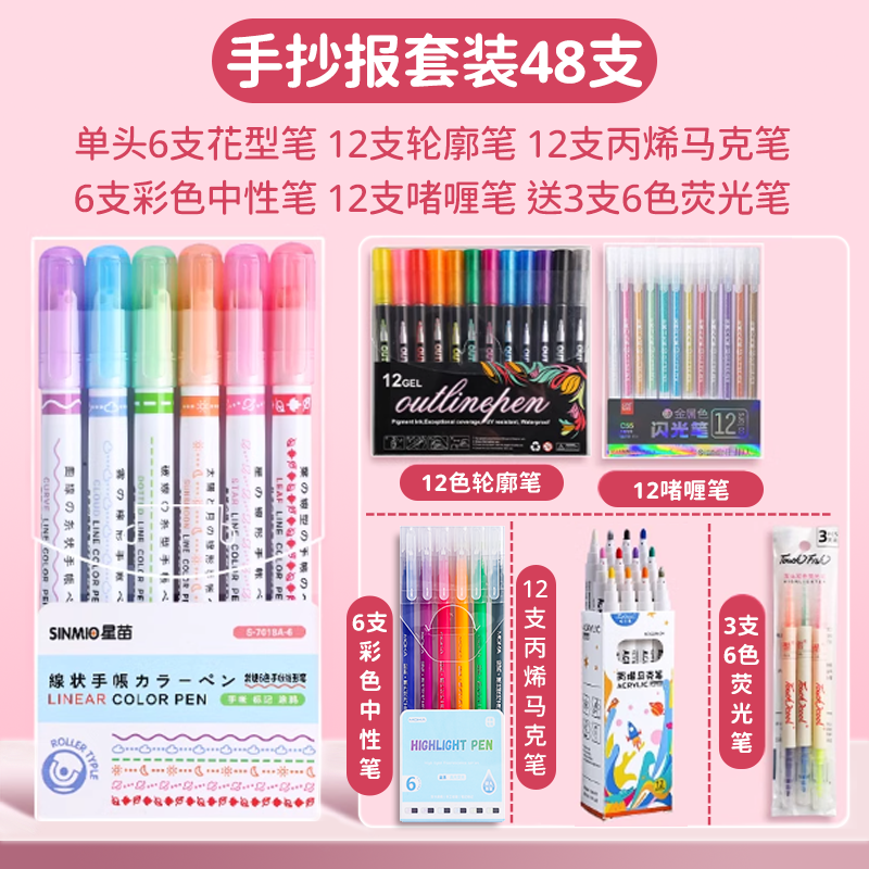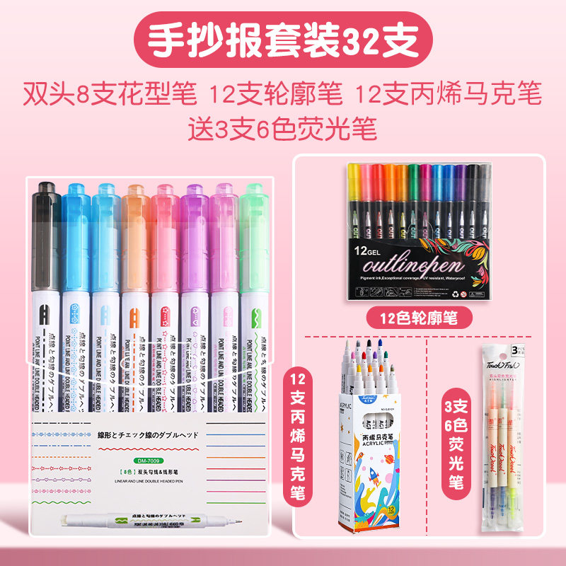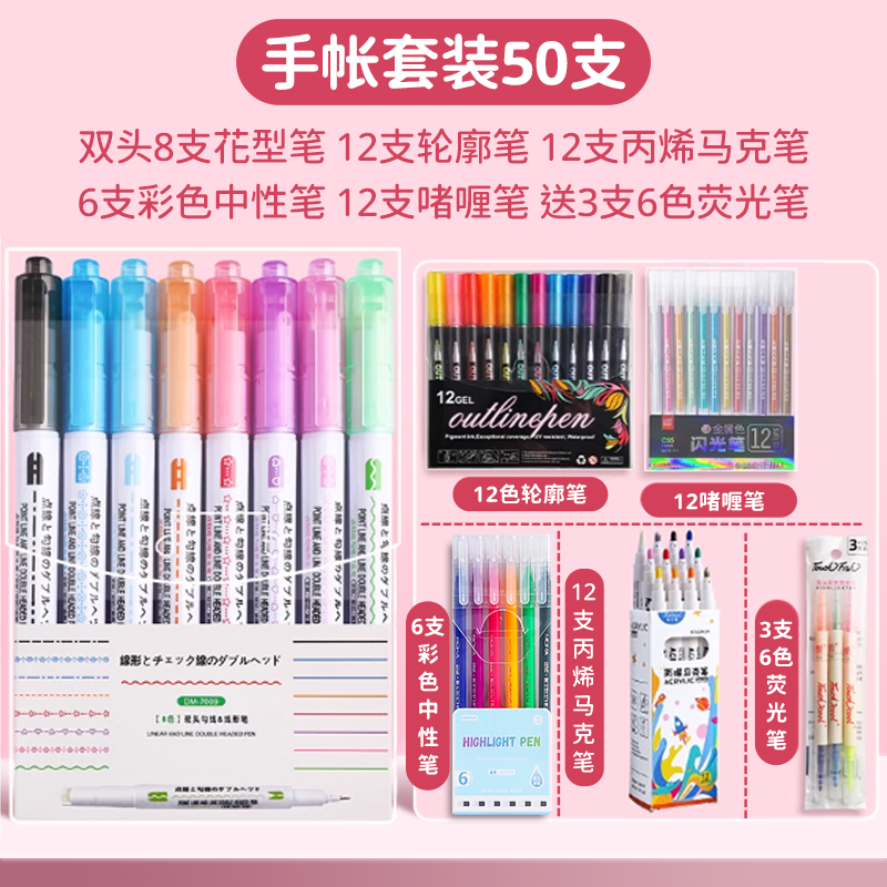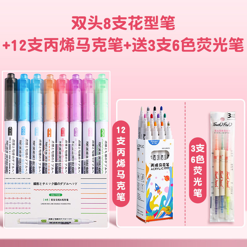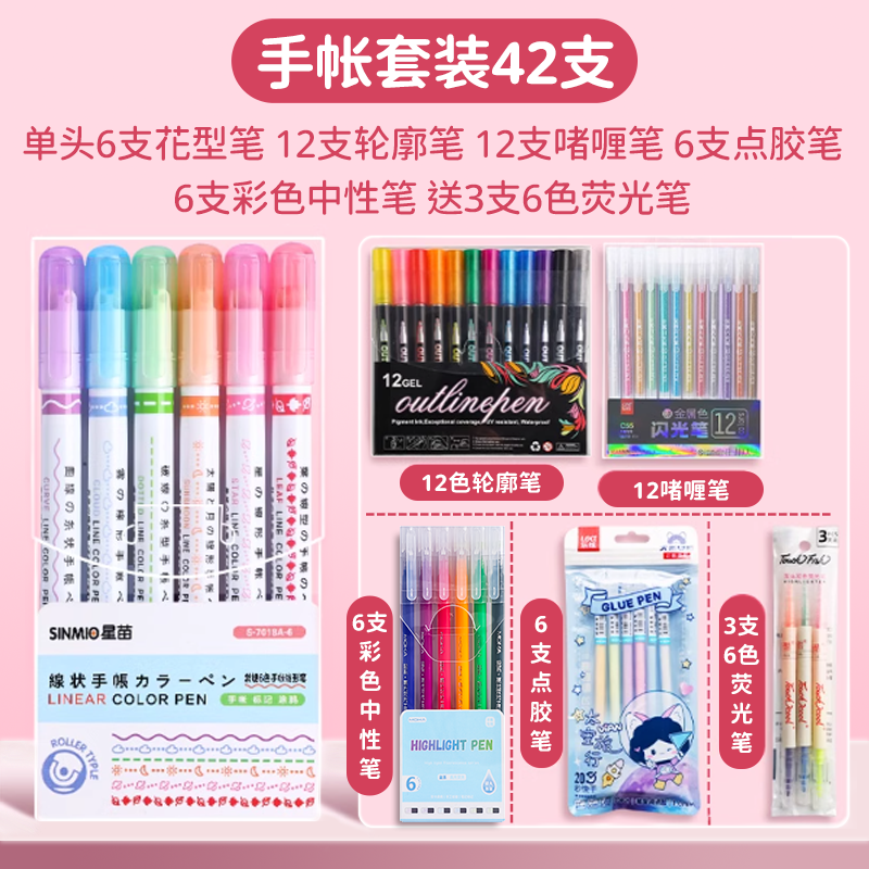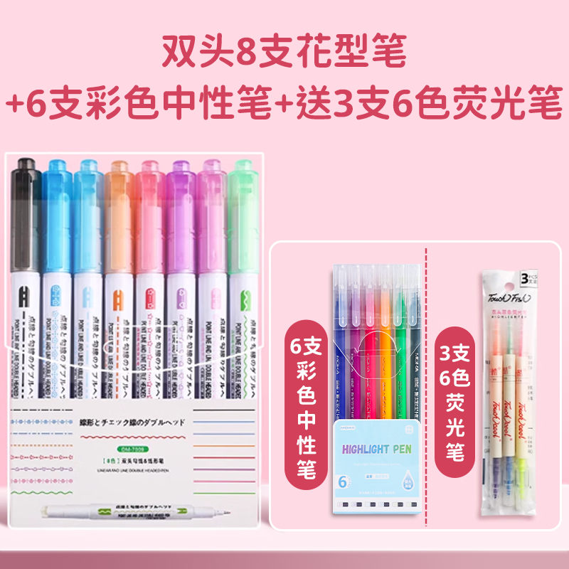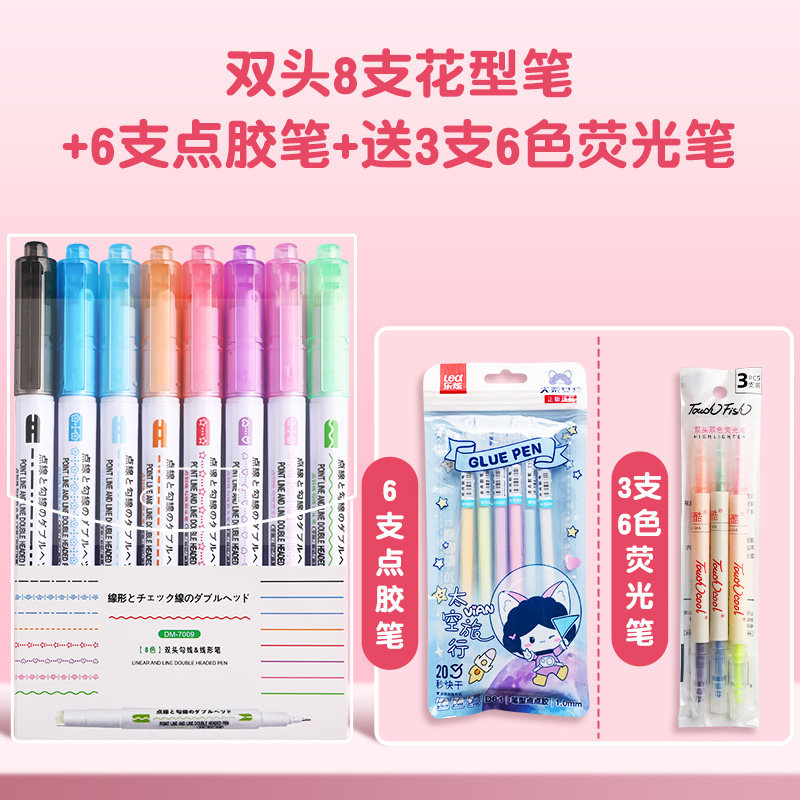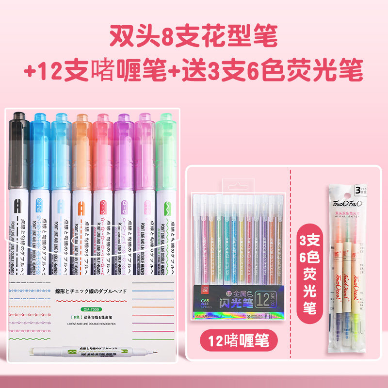 花型轮廓曲线笔手帐图案彩色标记花纹荧光色手账多色笔儿童花形多功能花边花色记号手抄报专用印花线条滚轮笔