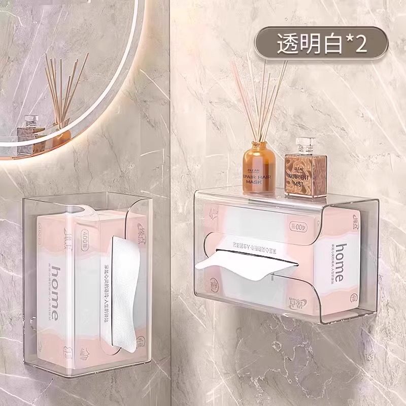 > 纸巾盒壁挂式抽纸盒家用洗脸巾收纳盒厕所卫生间厨房倒挂餐巾纸盒