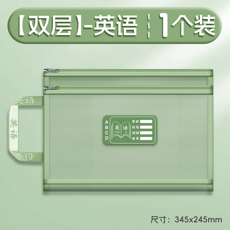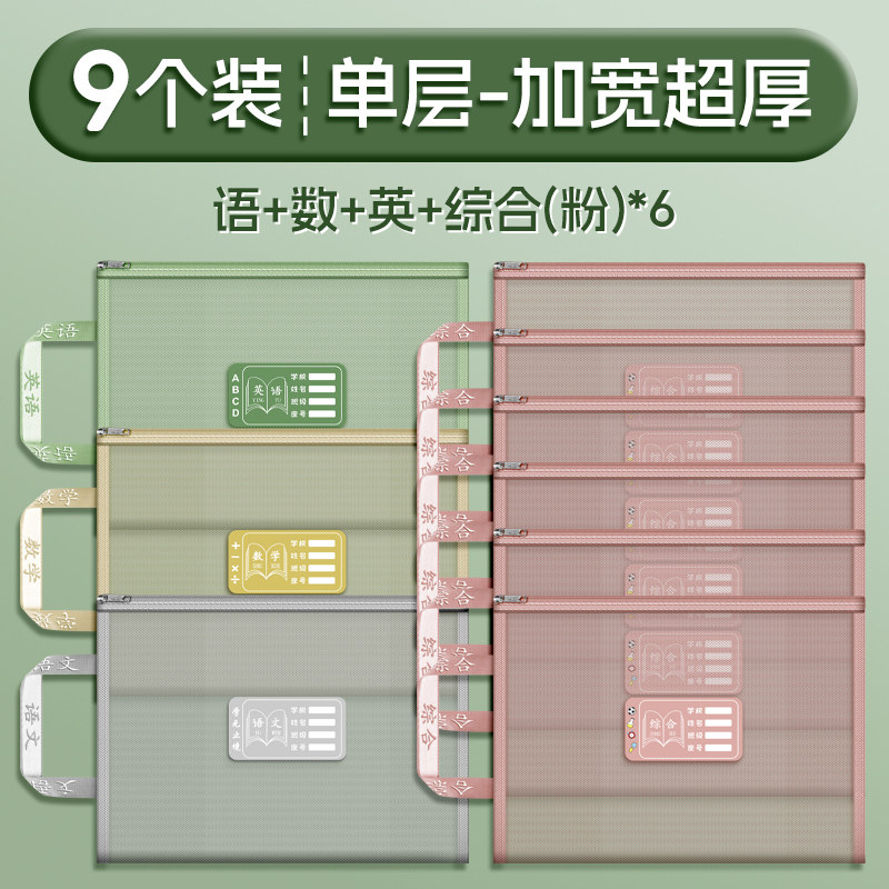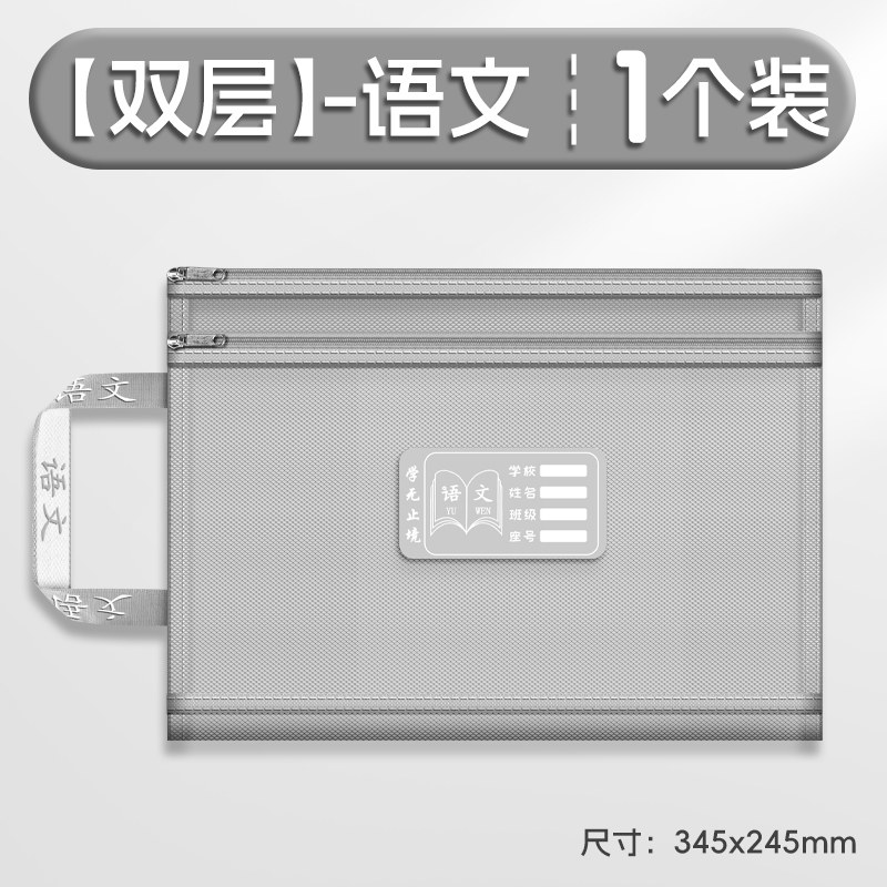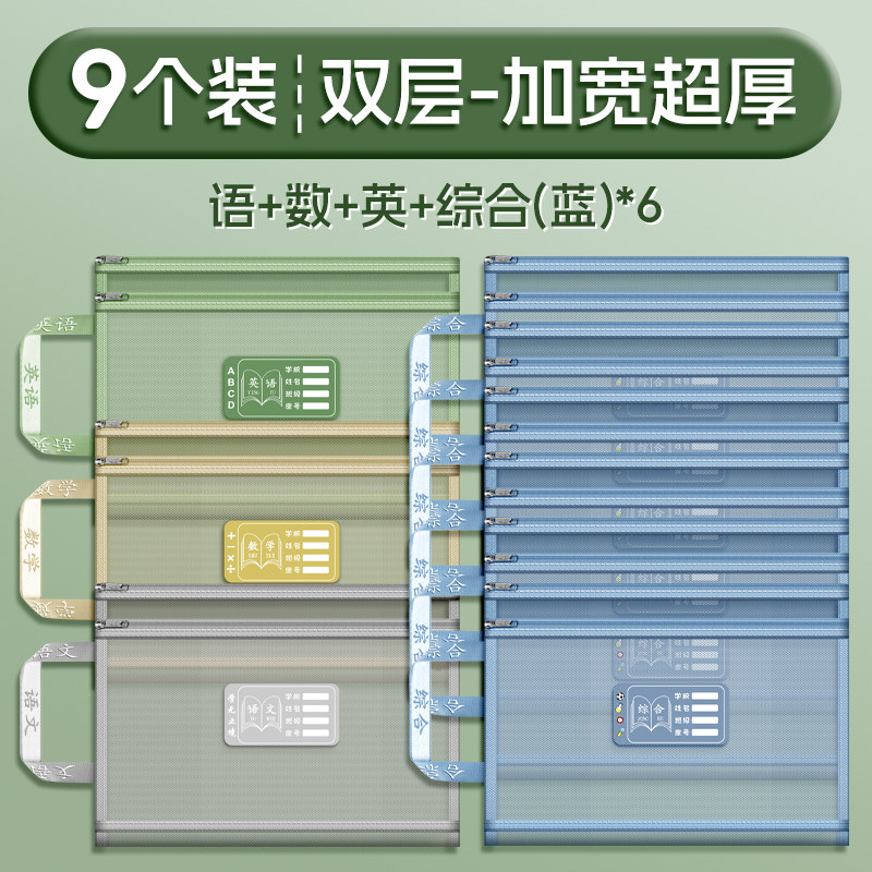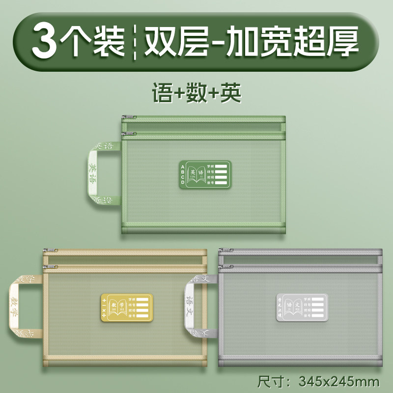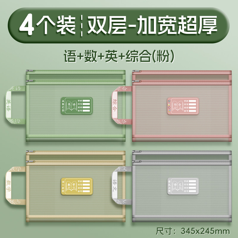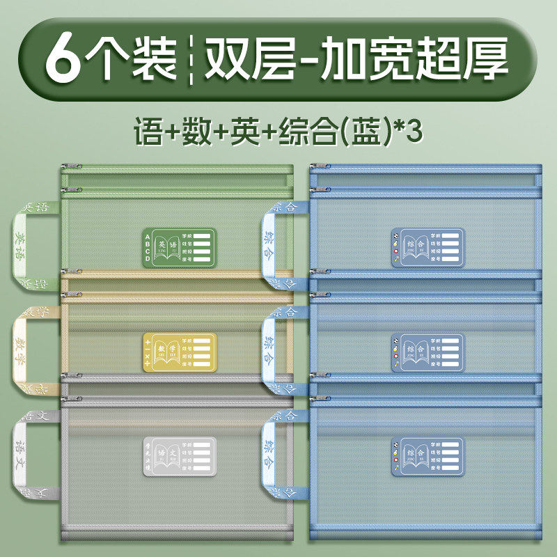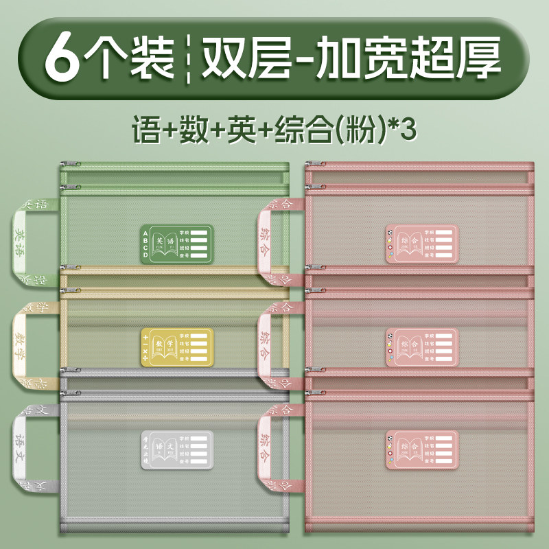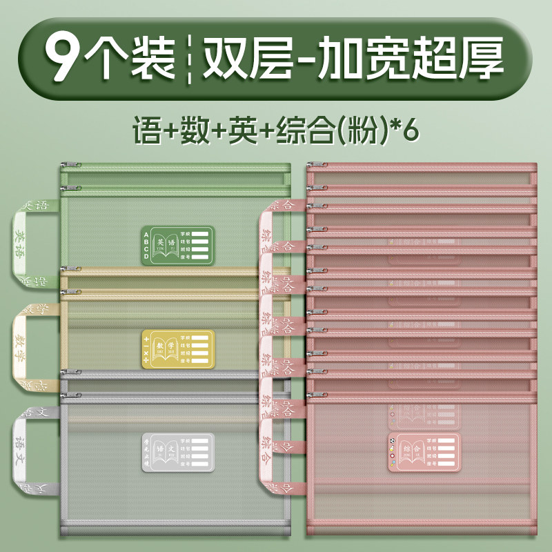 双层a4网纱科目分类袋文件袋收纳袋小学生拉链式手提补习书袋透明拎书学生学科试卷袋作业书本学习装书初中生