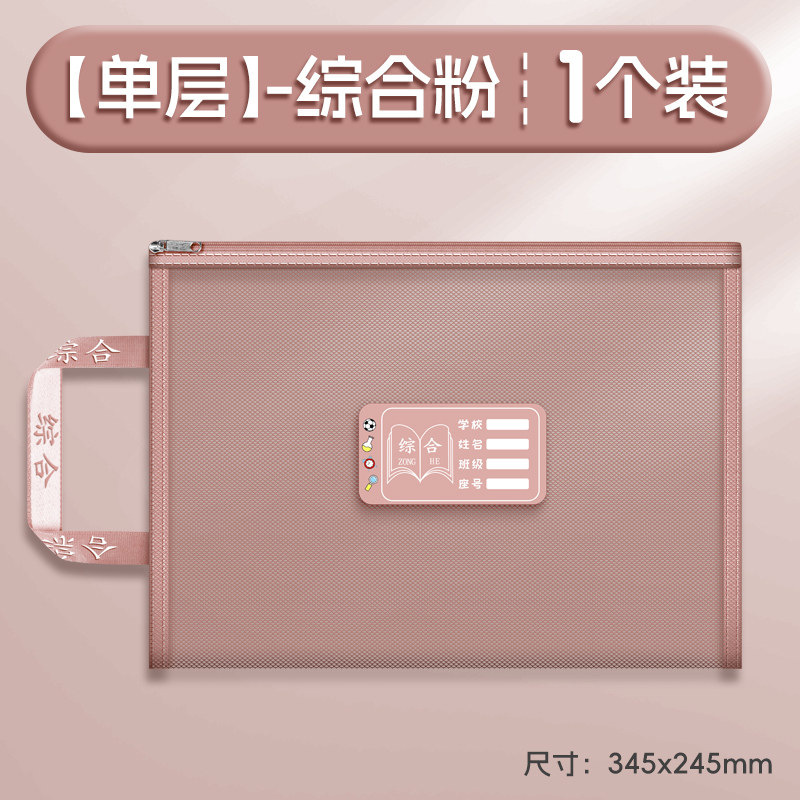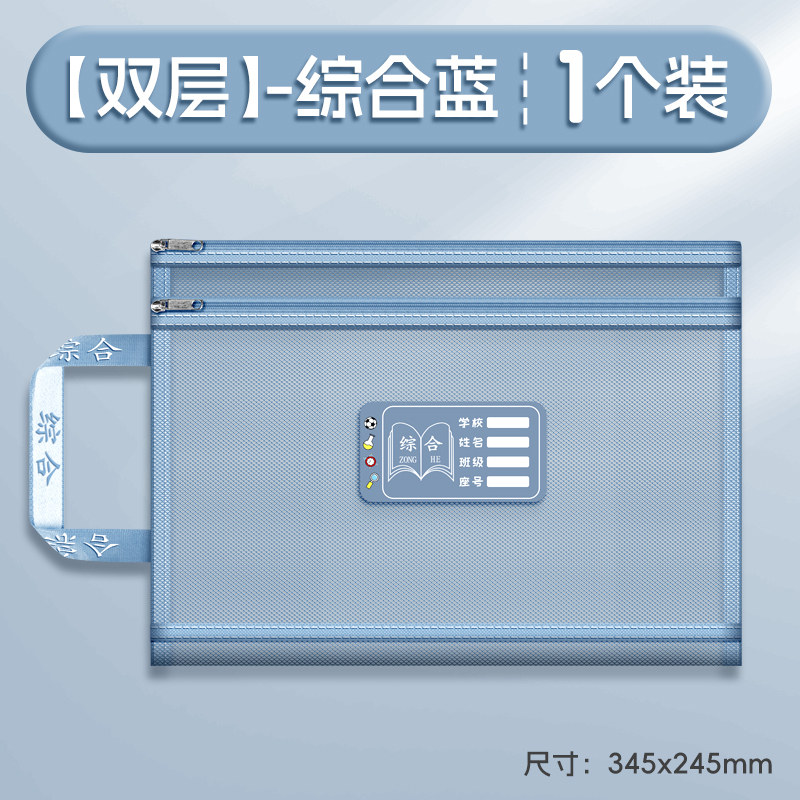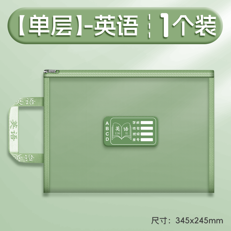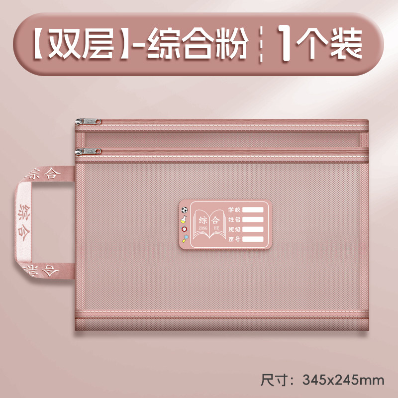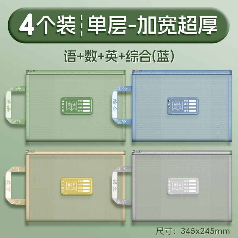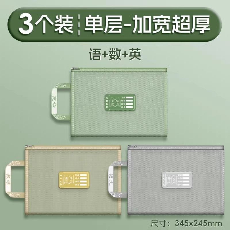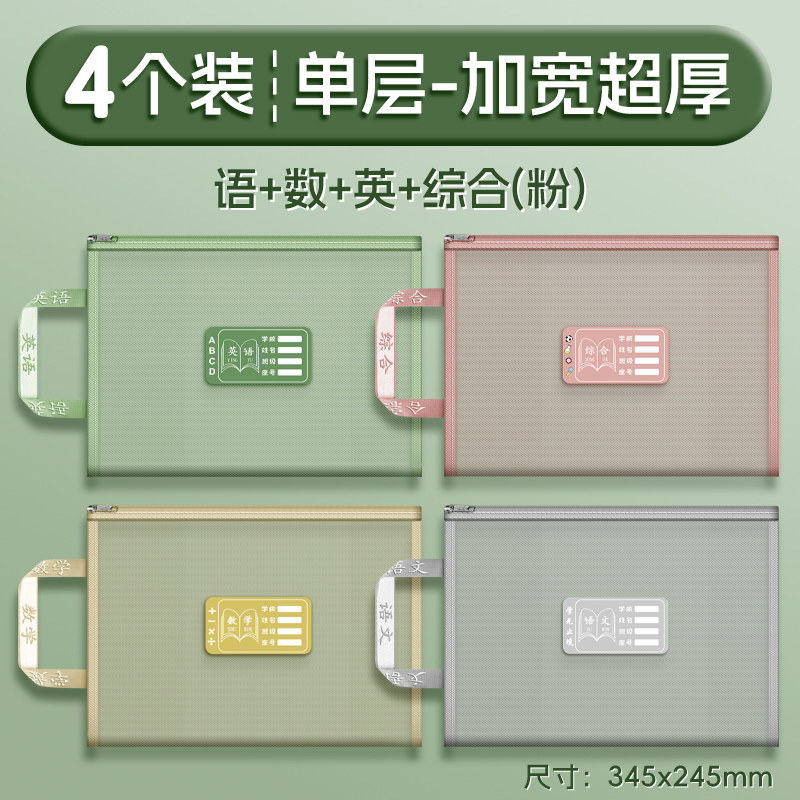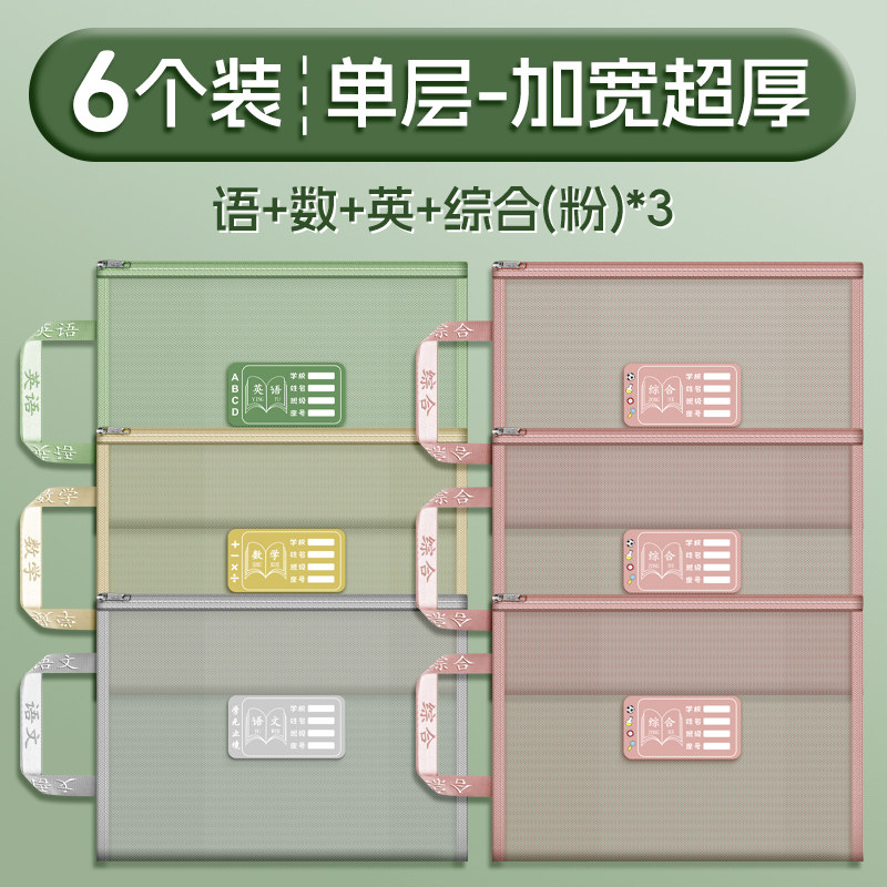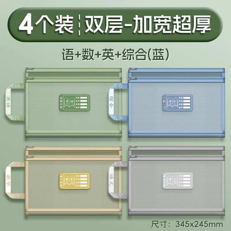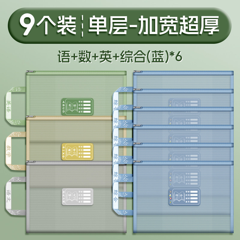 双层a4网纱科目分类袋文件袋收纳袋小学生拉链式手提补习书袋透明拎书学生学科试卷袋作业书本学习装书初中生