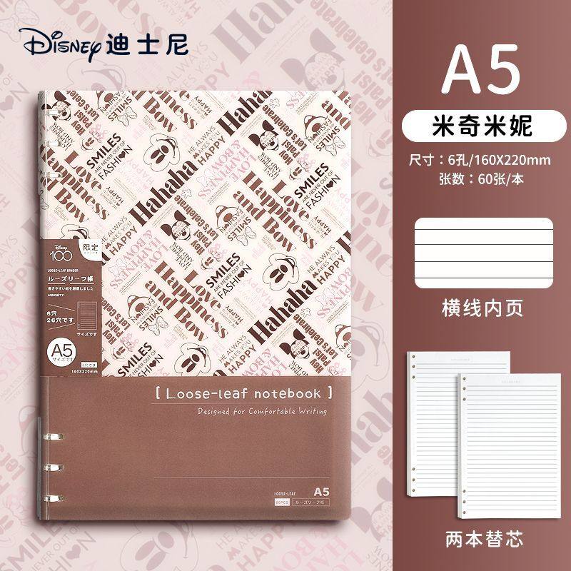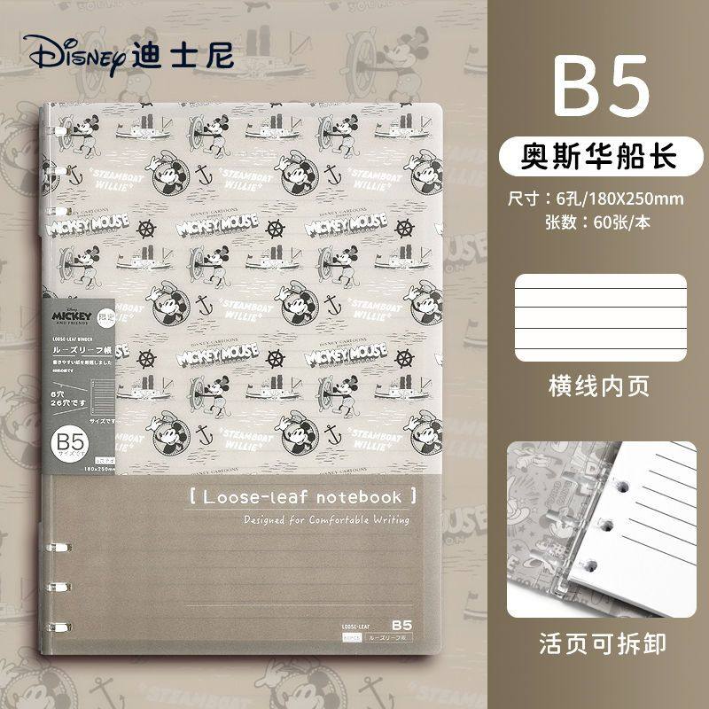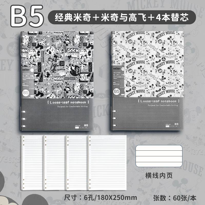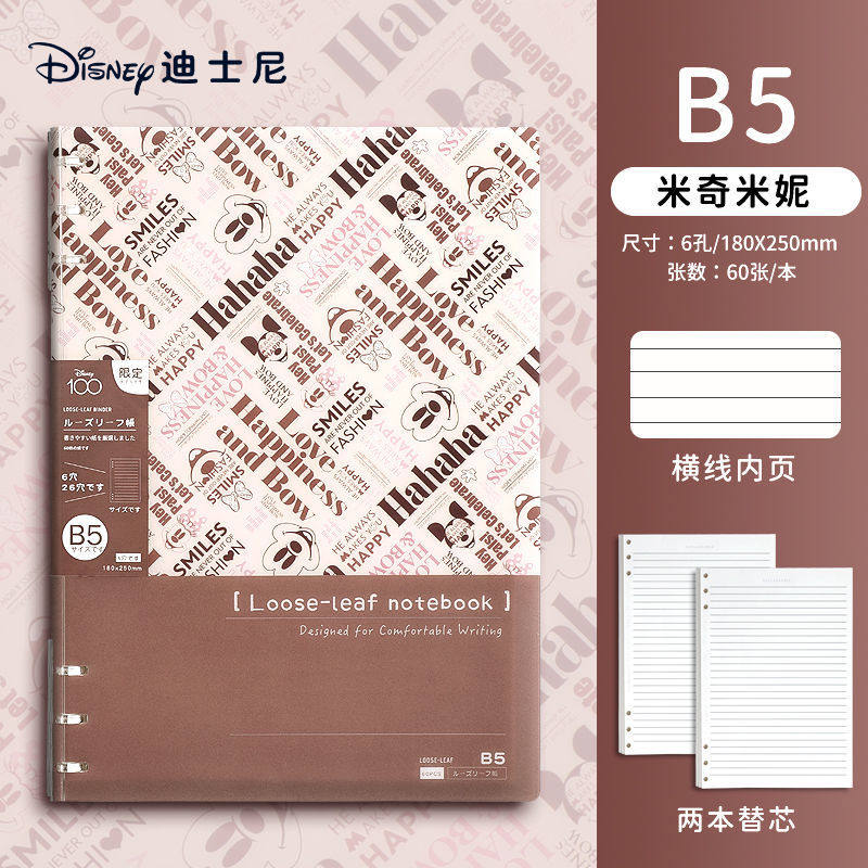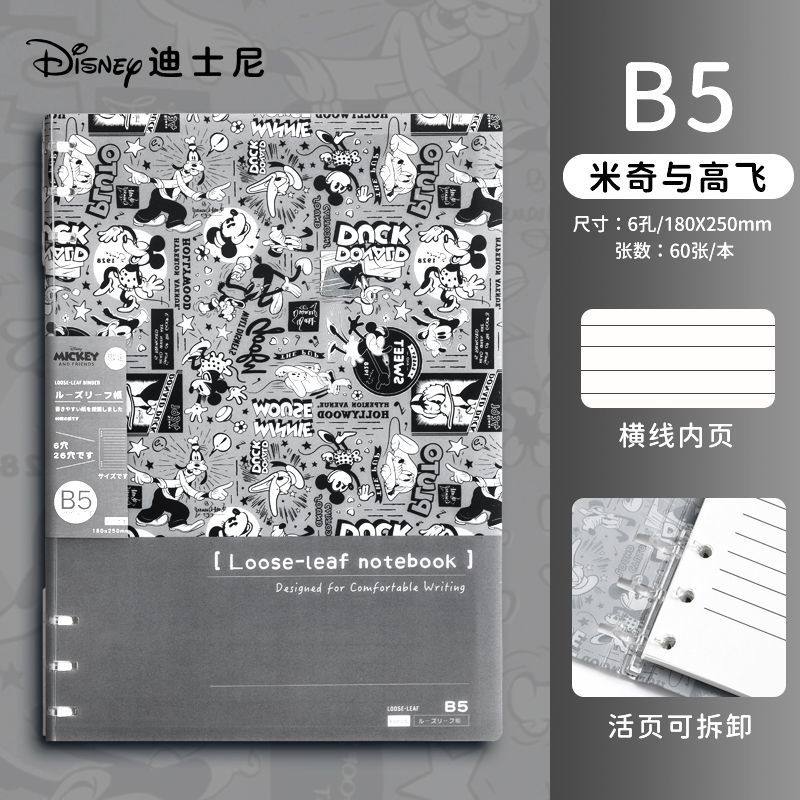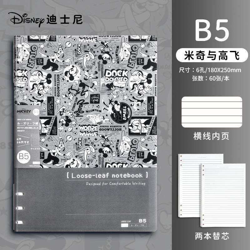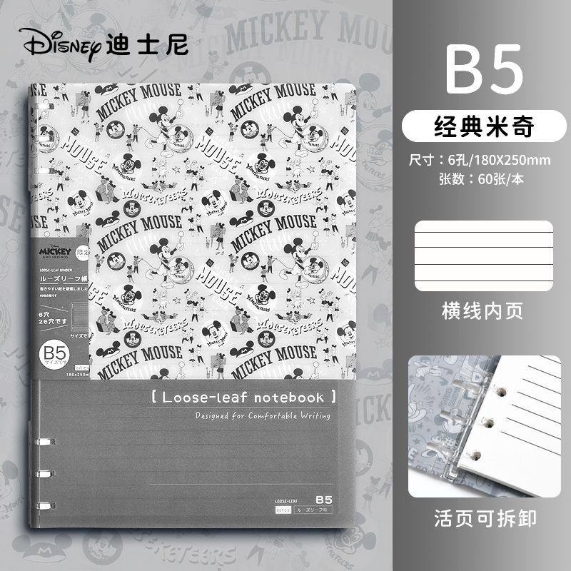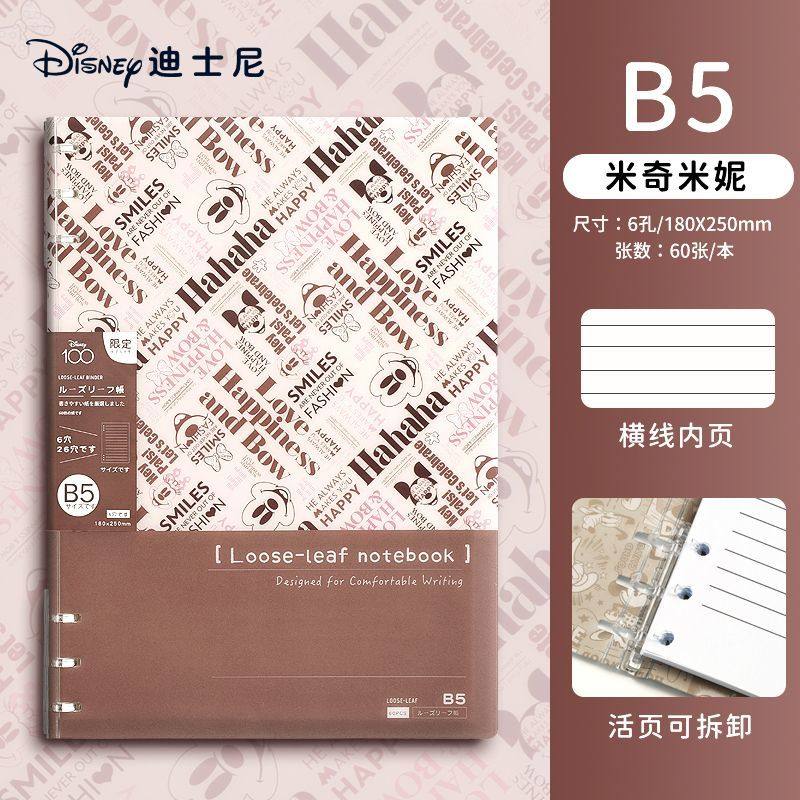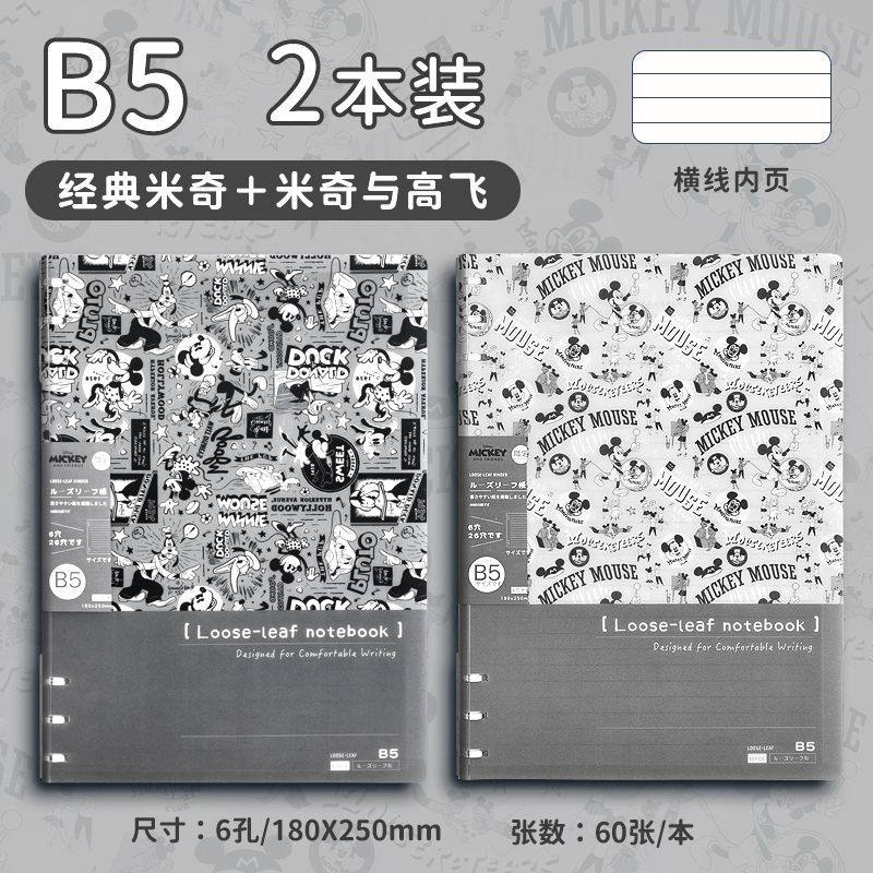 迪士尼活页本B5不硌手笔记本高颜值米奇外壳学生用可拆卸可翻折线圈本活页纸初中生大学生专用简约记事本本子
