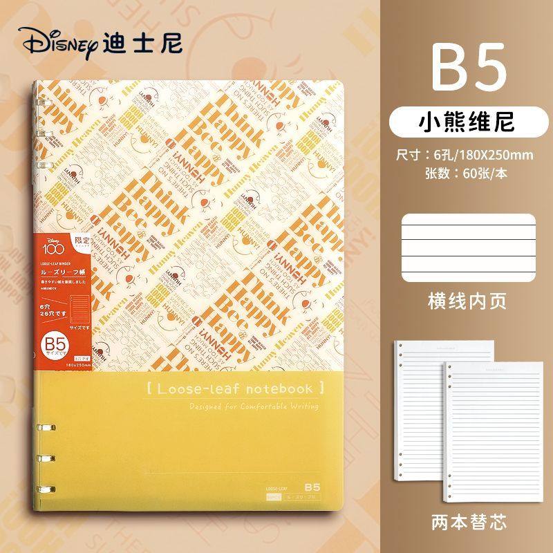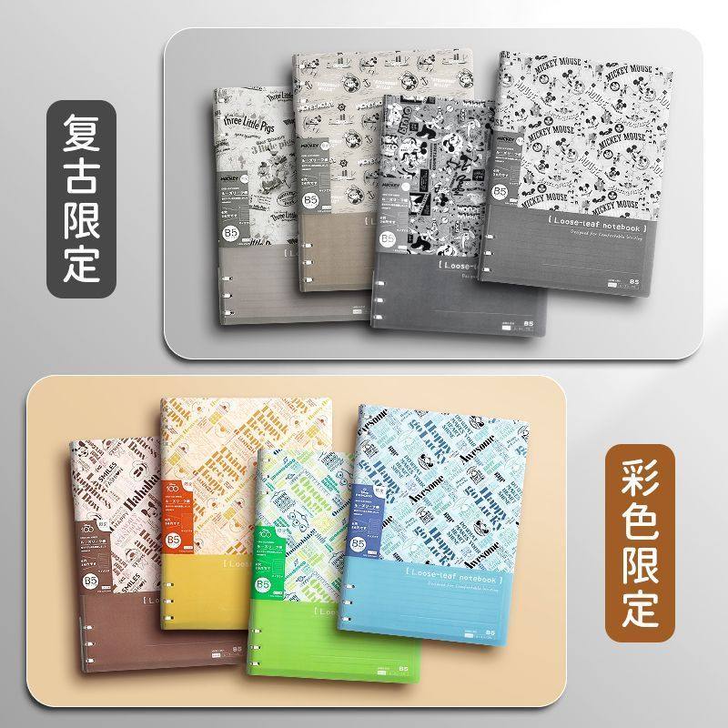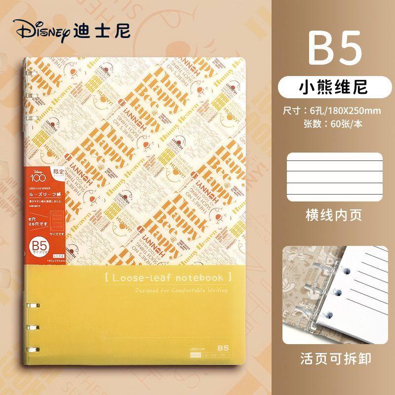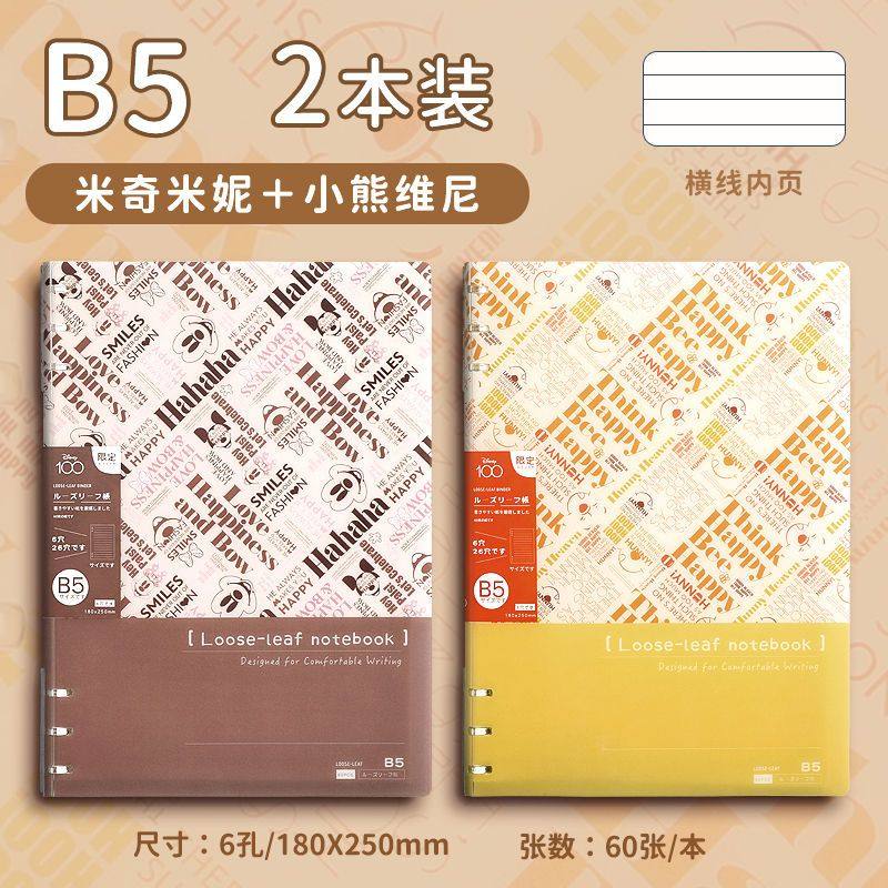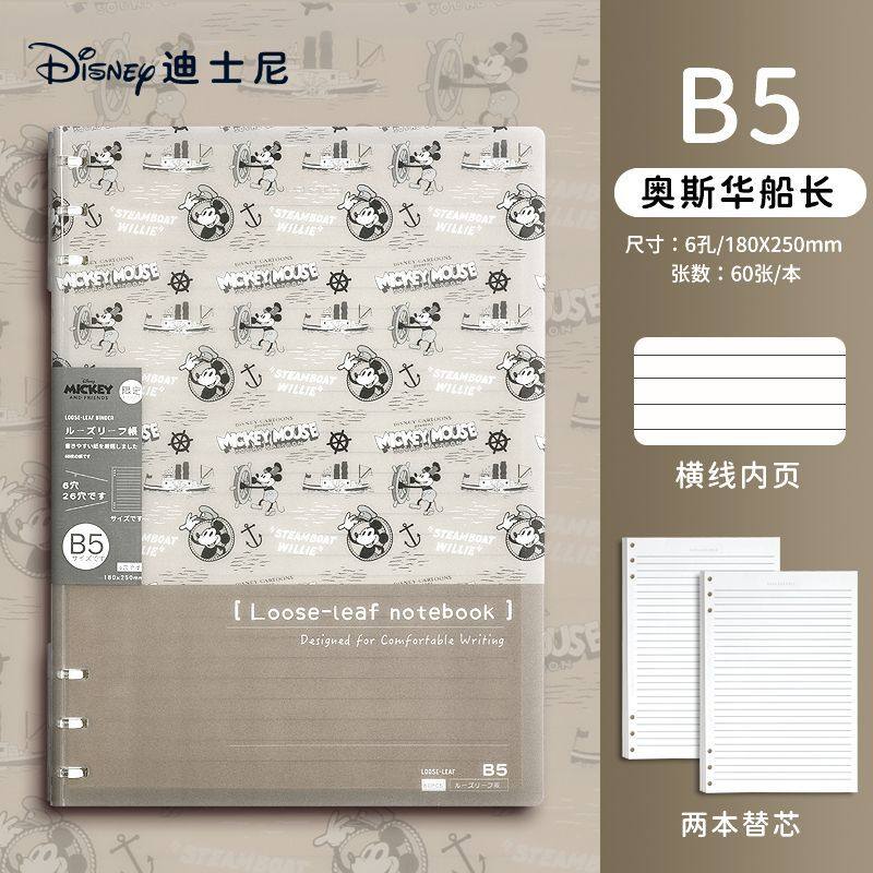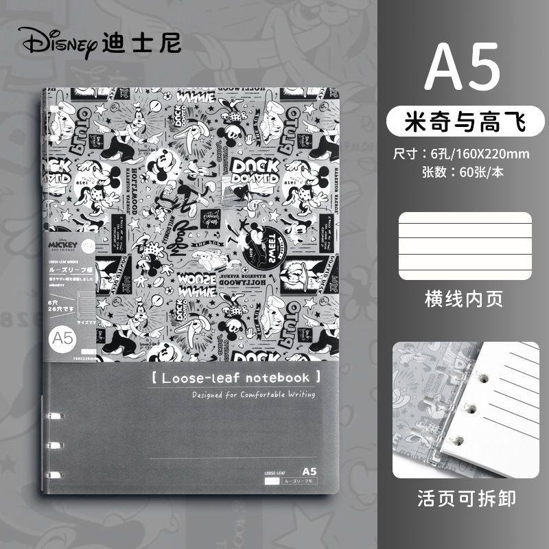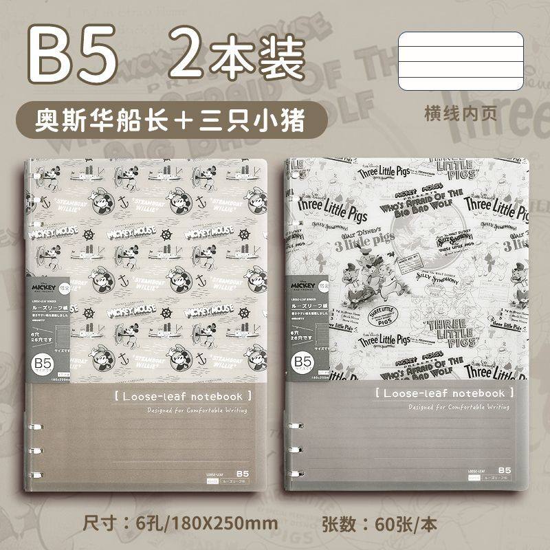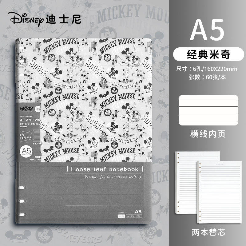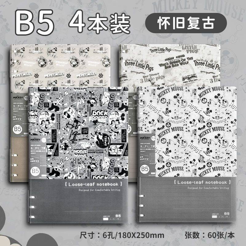 迪士尼活页本B5不硌手笔记本高颜值米奇外壳学生用可拆卸可翻折线圈本活页纸初中生大学生专用简约记事本本子