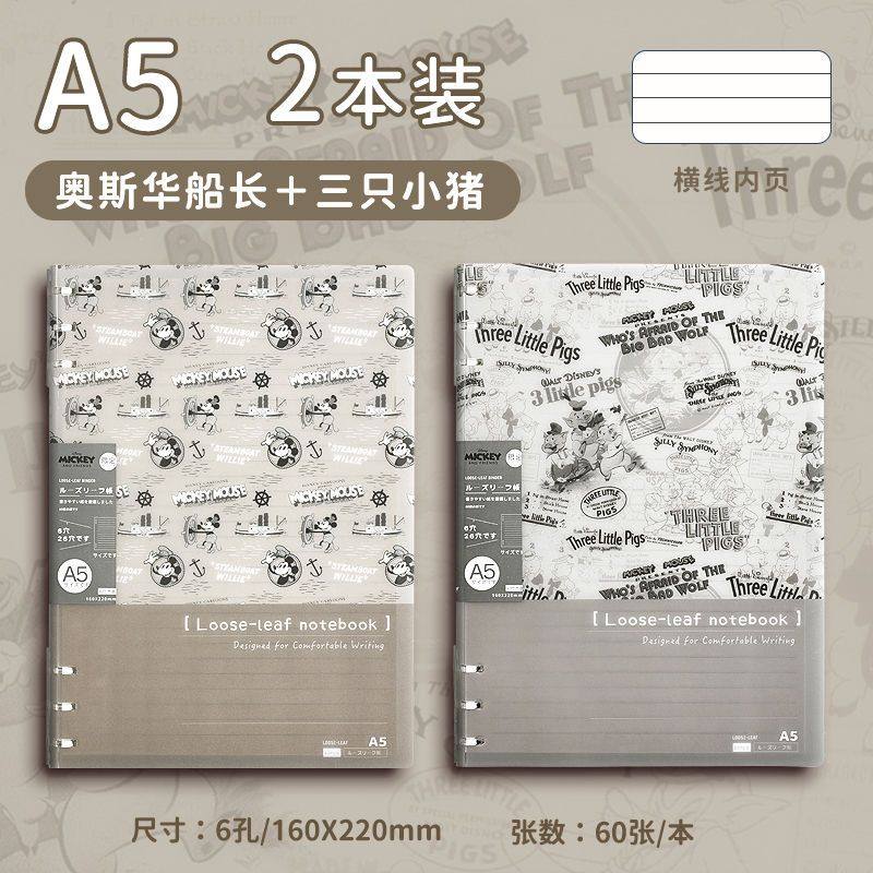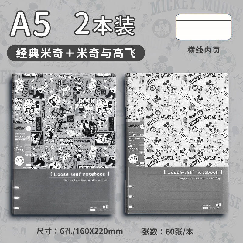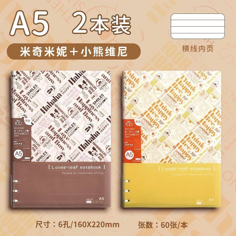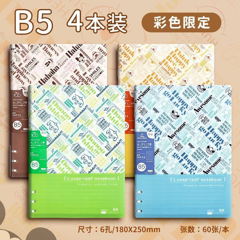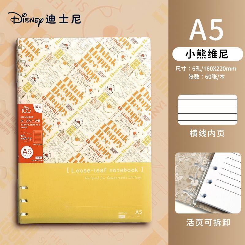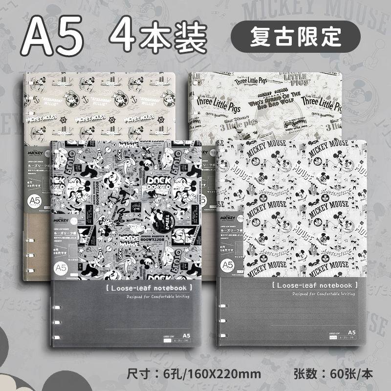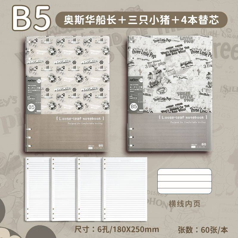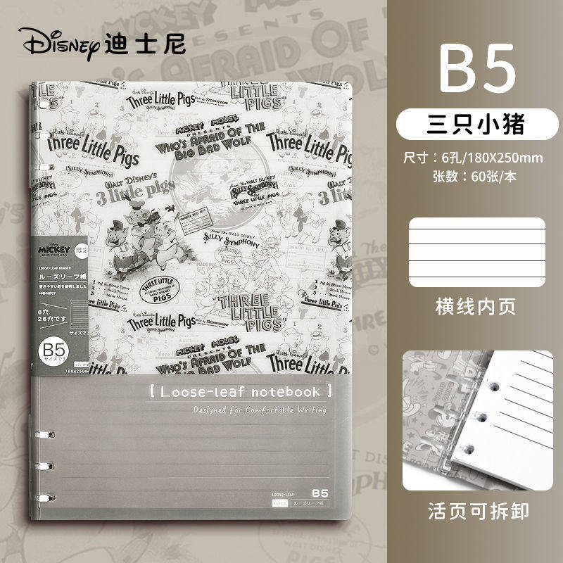 迪士尼活页本B5不硌手笔记本高颜值米奇外壳学生用可拆卸可翻折线圈本活页纸初中生大学生专用简约记事本本子