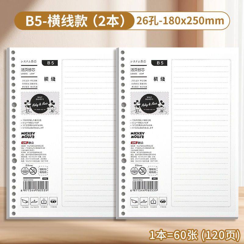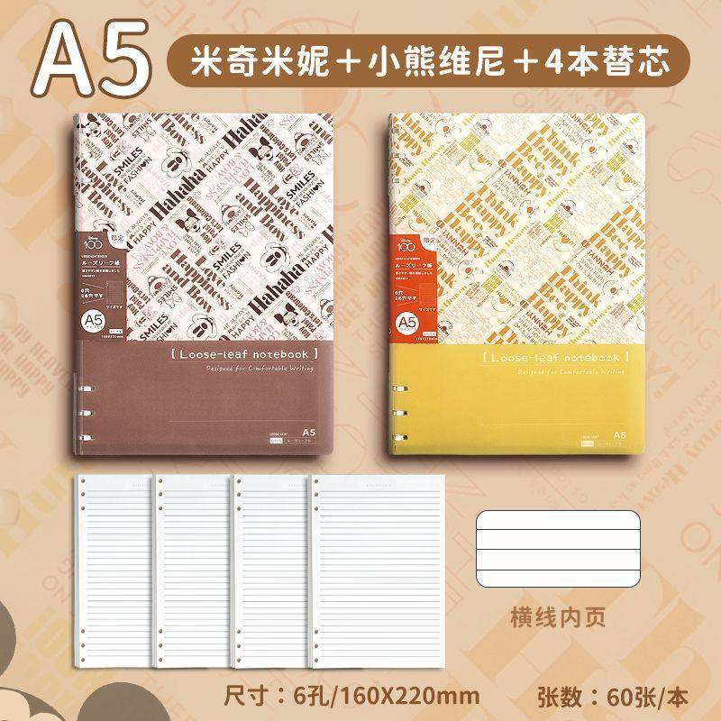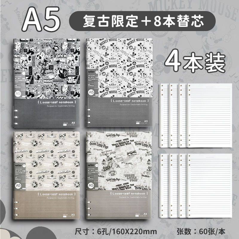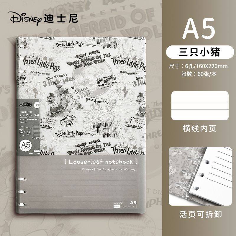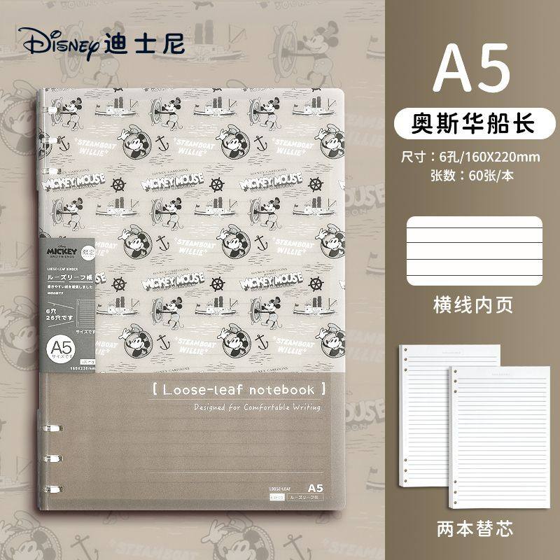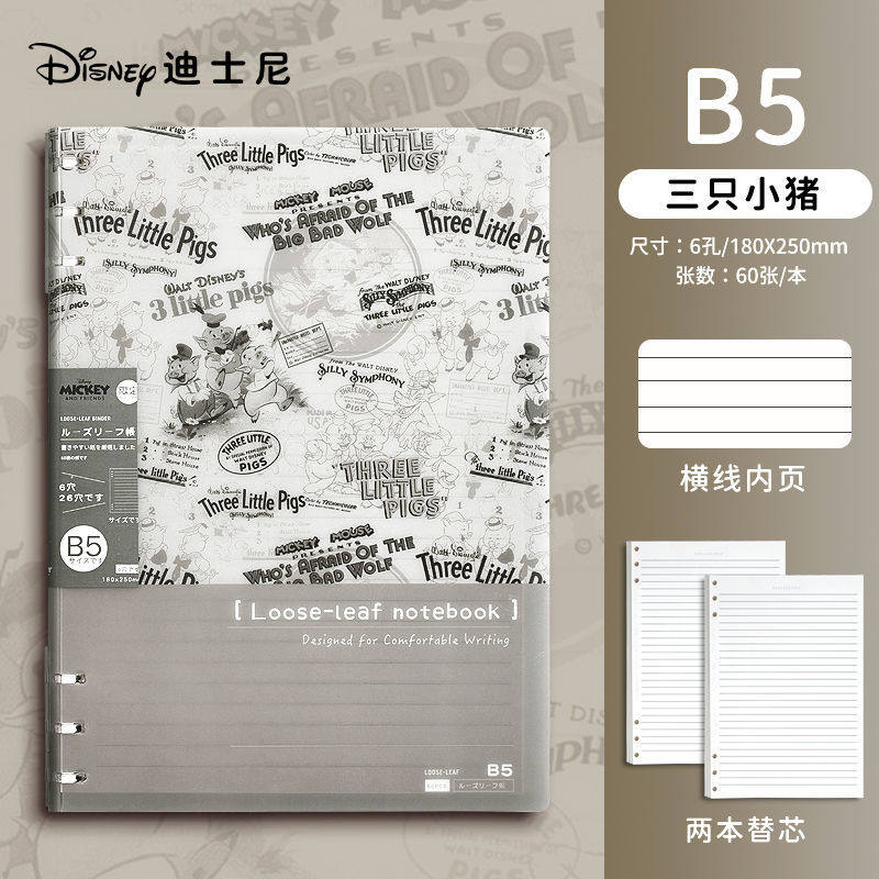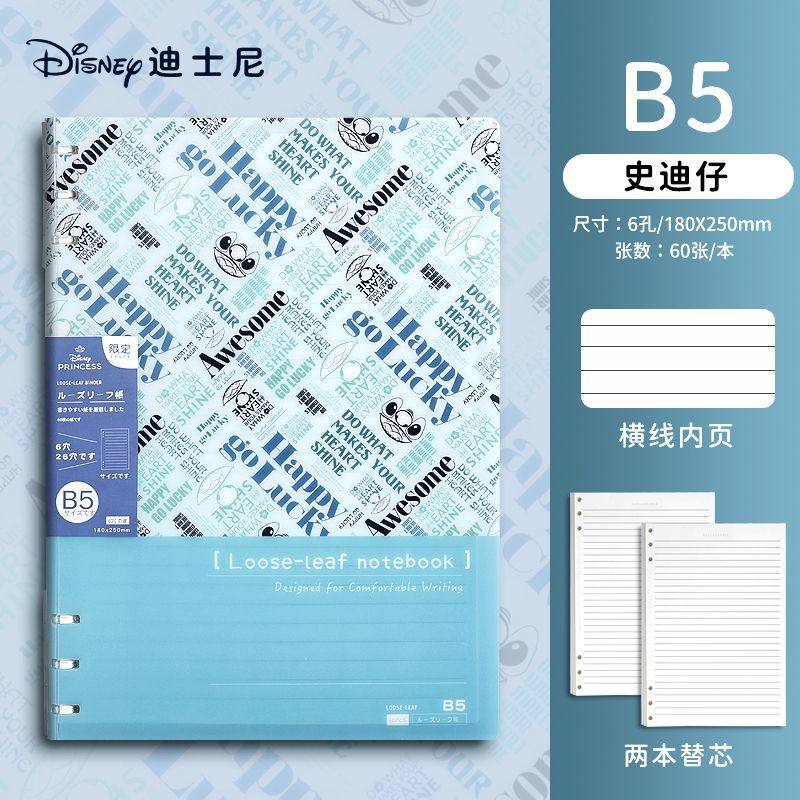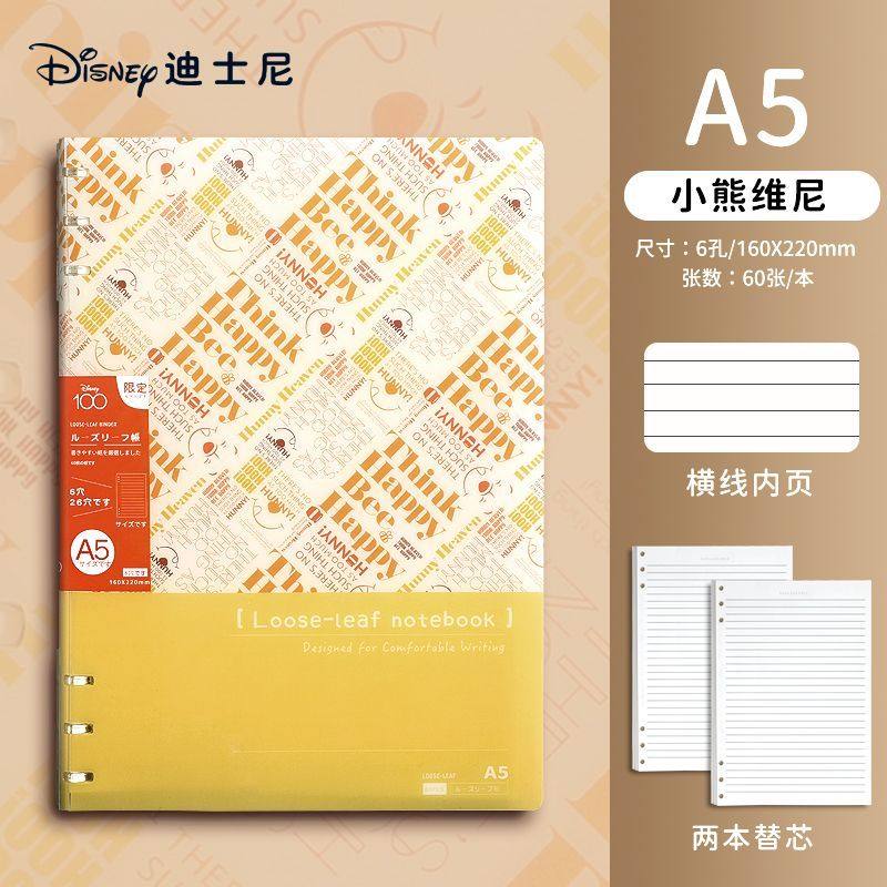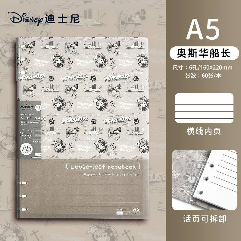 迪士尼活页本B5不硌手笔记本高颜值米奇外壳学生用可拆卸可翻折线圈本活页纸初中生大学生专用简约记事本本子