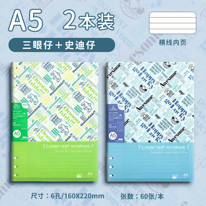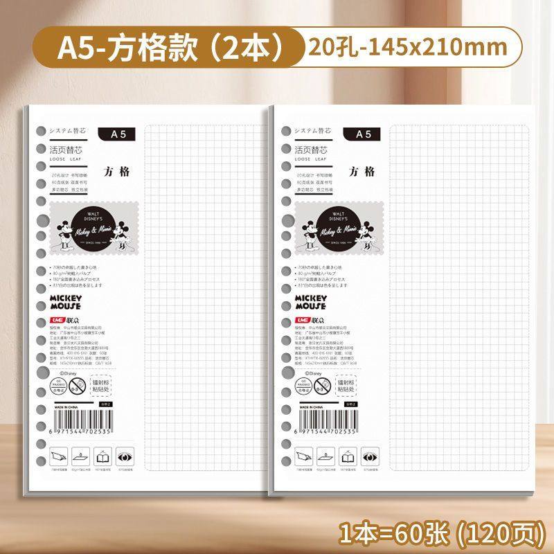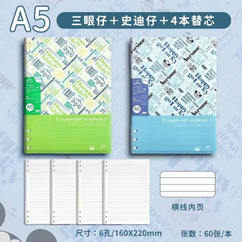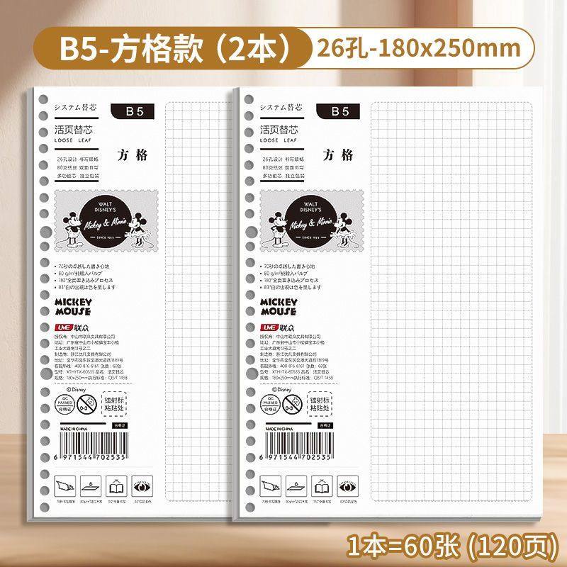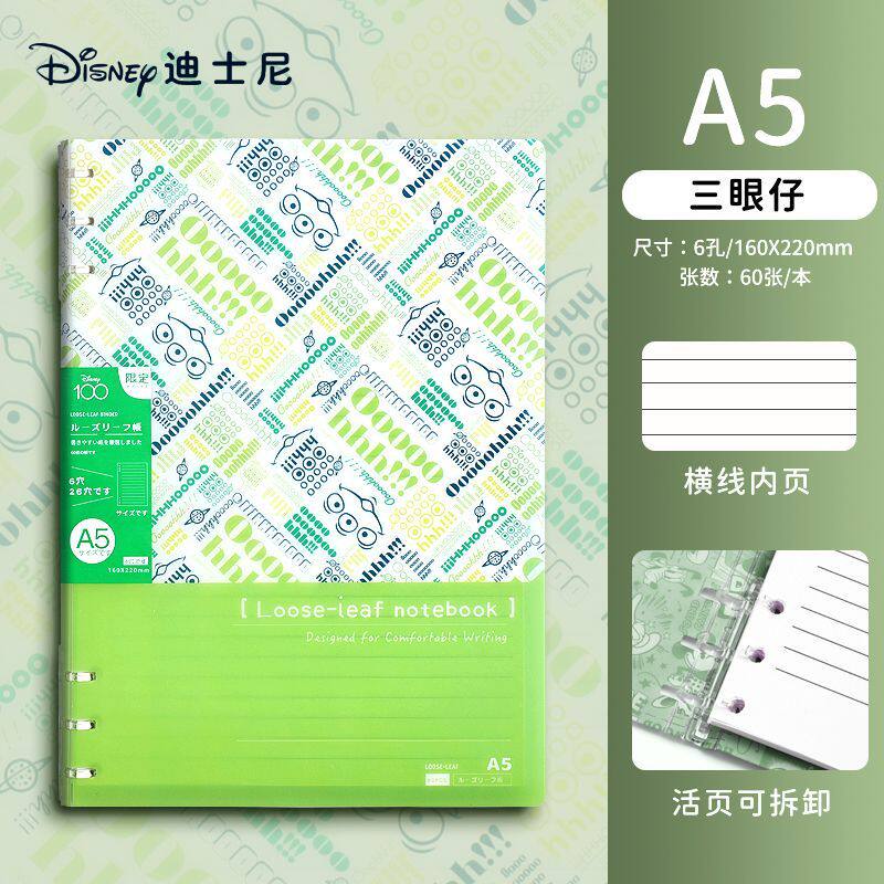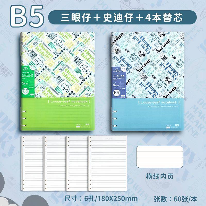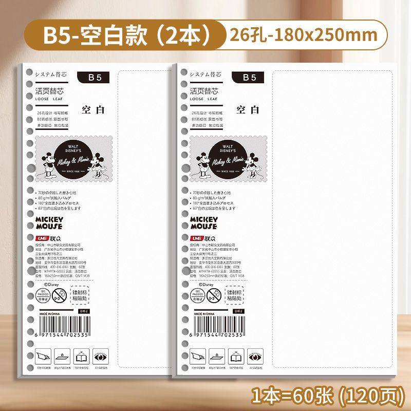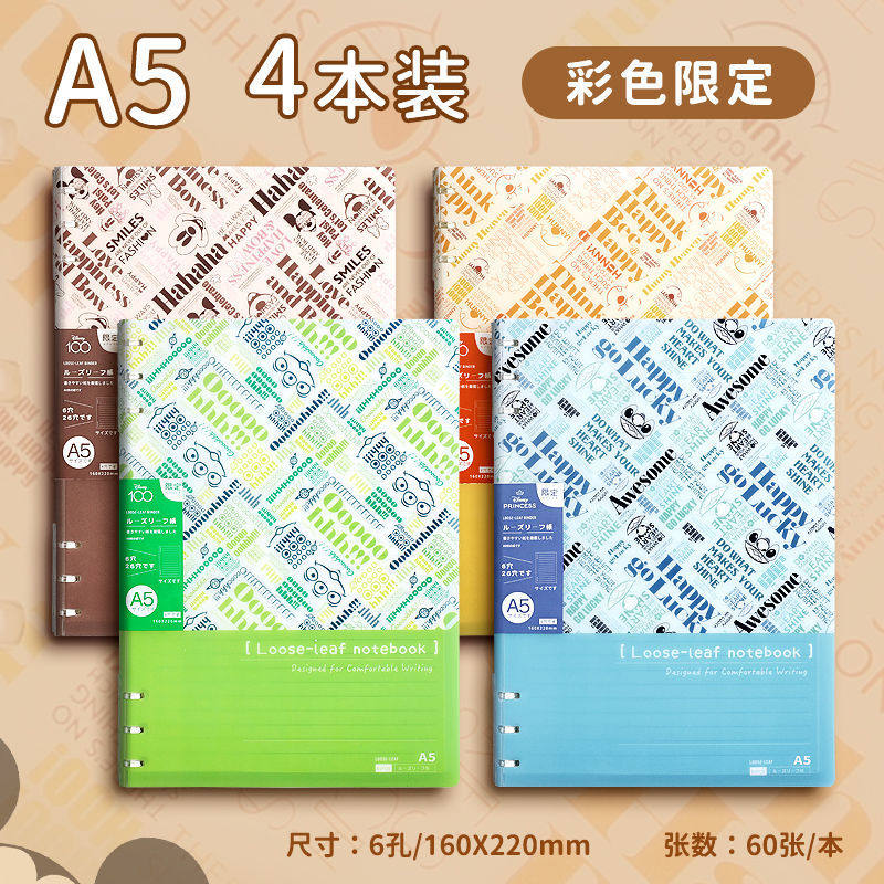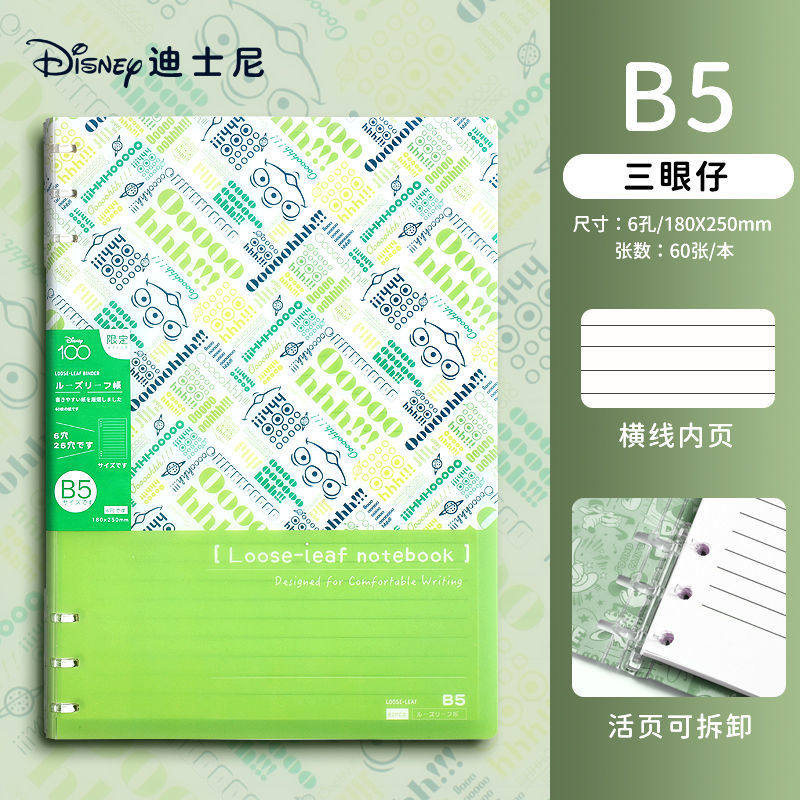 迪士尼活页本B5不硌手笔记本高颜值米奇外壳学生用可拆卸可翻折线圈本活页纸初中生大学生专用简约记事本本子